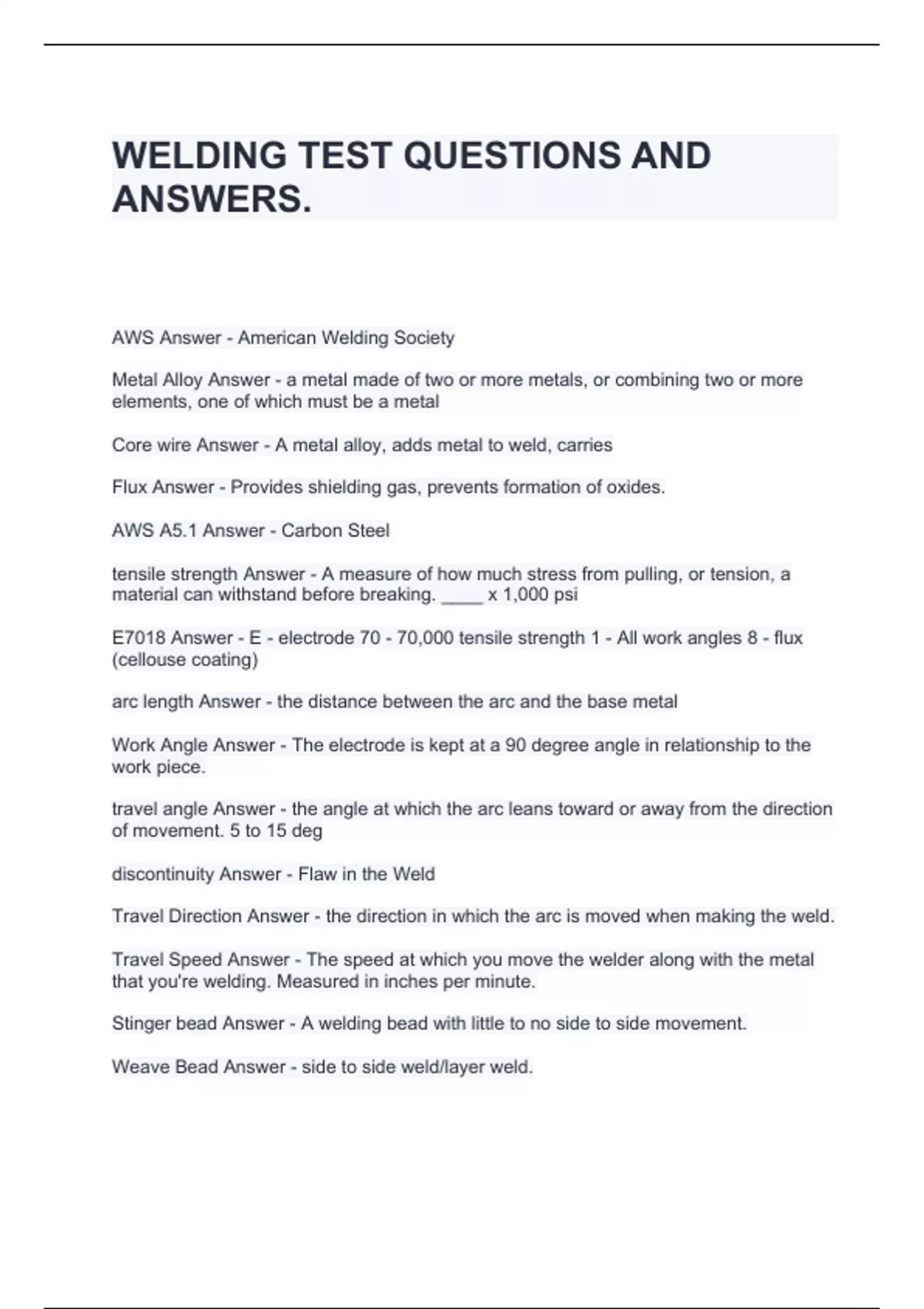 AWS CWI EXAM QUESTIONS AND ANSWERS,AWS-CWI Fundamentals Test-1 Questions and Answers.,Chapter 1 Welding Inspection and Certification Exam Questions and Answers-,CWI Examination-001 Pop Test Modules 1&2- Part A Fundamentals Revision 7-,CWI Part B 1st Exam Questions and Answers,CWI Practice Part A Exam Questions and Answers,