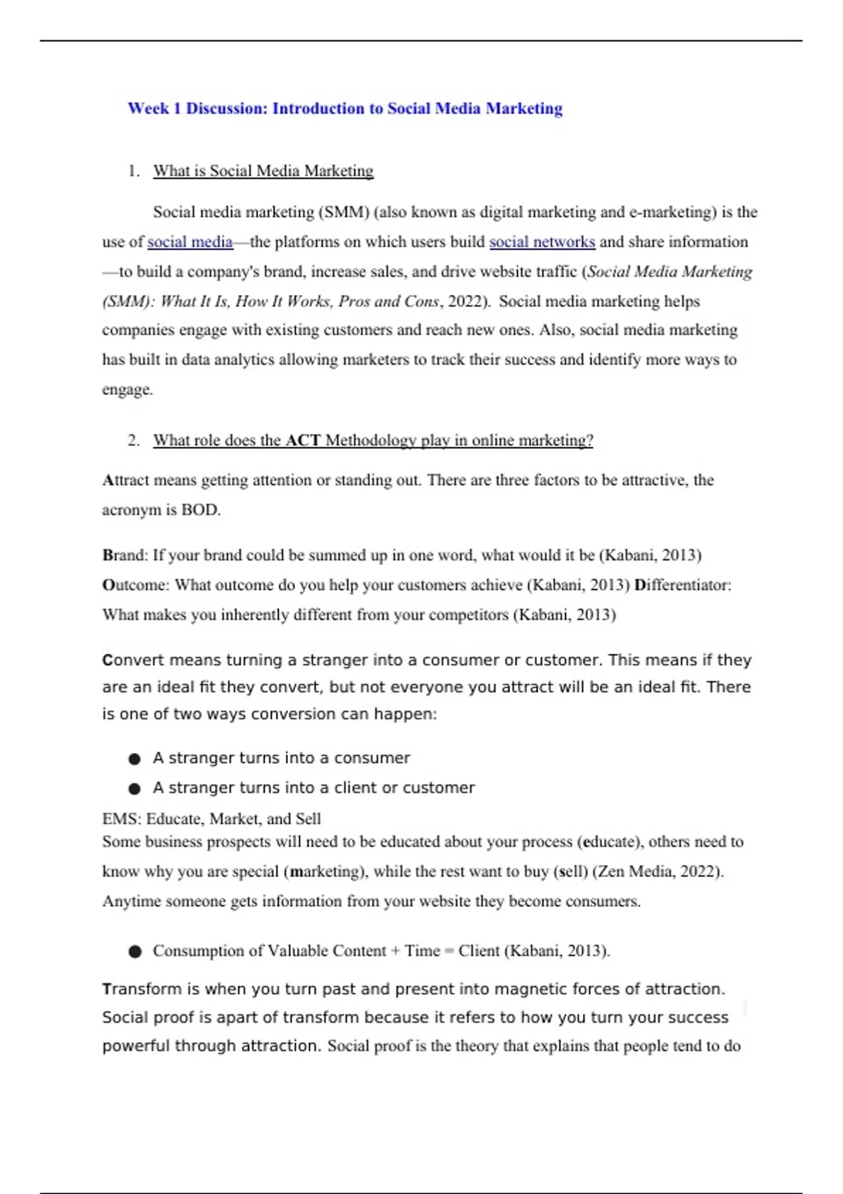 MKTG308 Week 1 Discussion; Introduction to Social Media Marketing