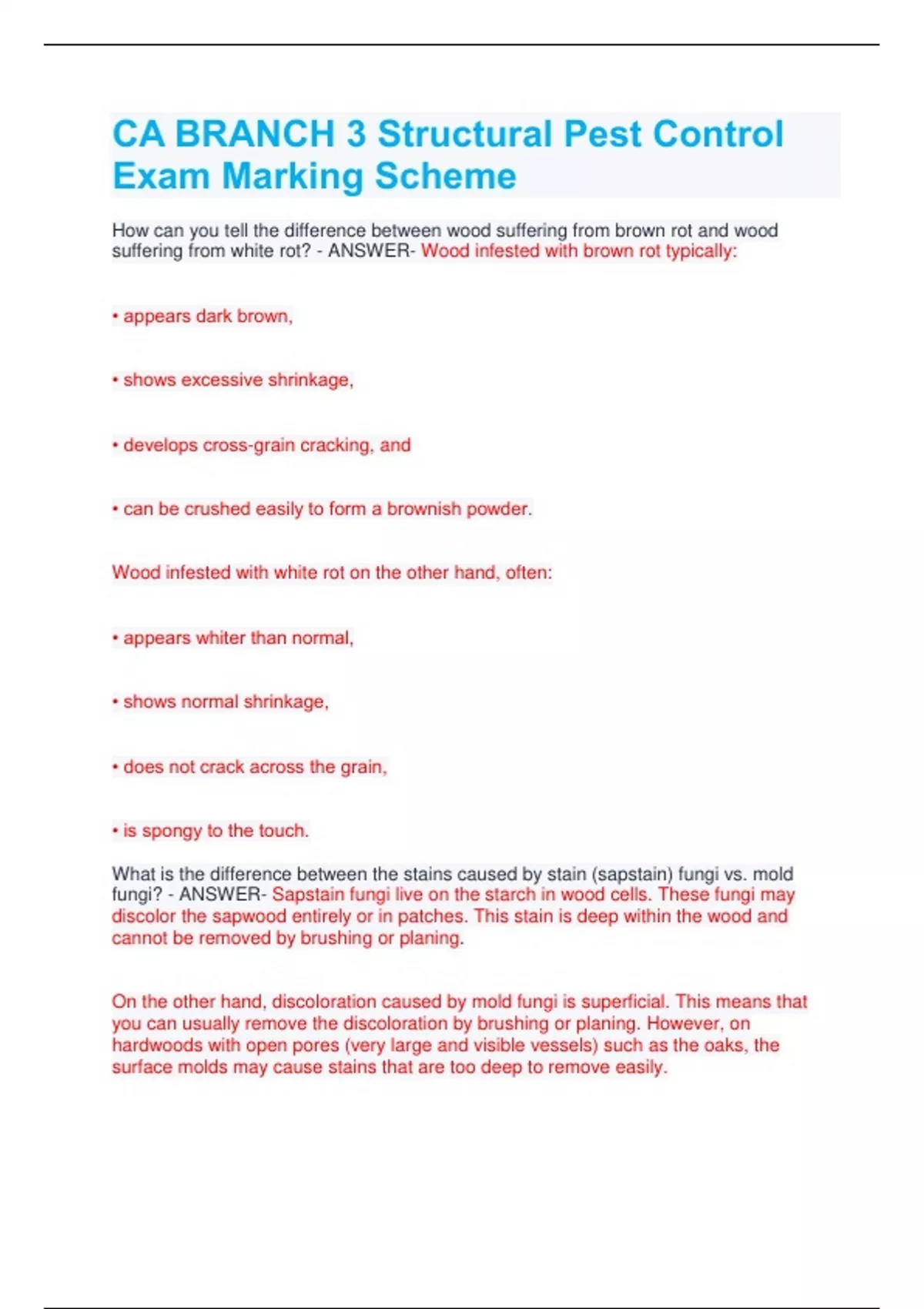 1 Exam (elaborations) Branch II CA Pest Test exam Questions with 100% Correct Answers 2024 2 Exam (elaborations) CA Branch 3 Rep exam questions with correct answers 2024 3 Exam (elaborations) CA BRANCH 3 Structural Pest Control Exam Complete Solutions 4 Exam (elaborations) Branch II CA EXAM Test Questions All 100% Answered 5 Exam (elaborations)