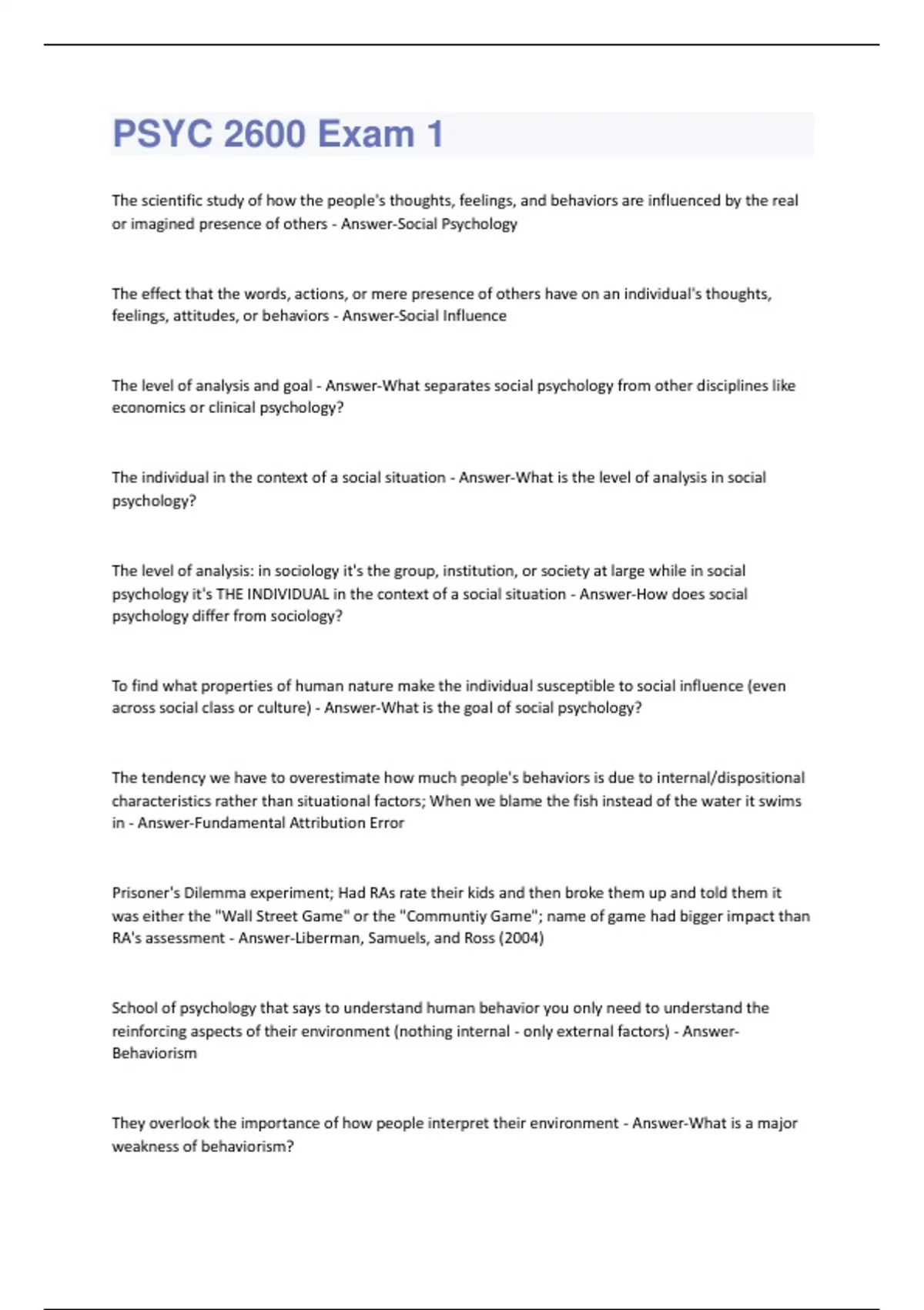 PSYC 2600 EXAM PACKAGE DEAL WITH COMPLETE SOLUTIONS GRADED A+