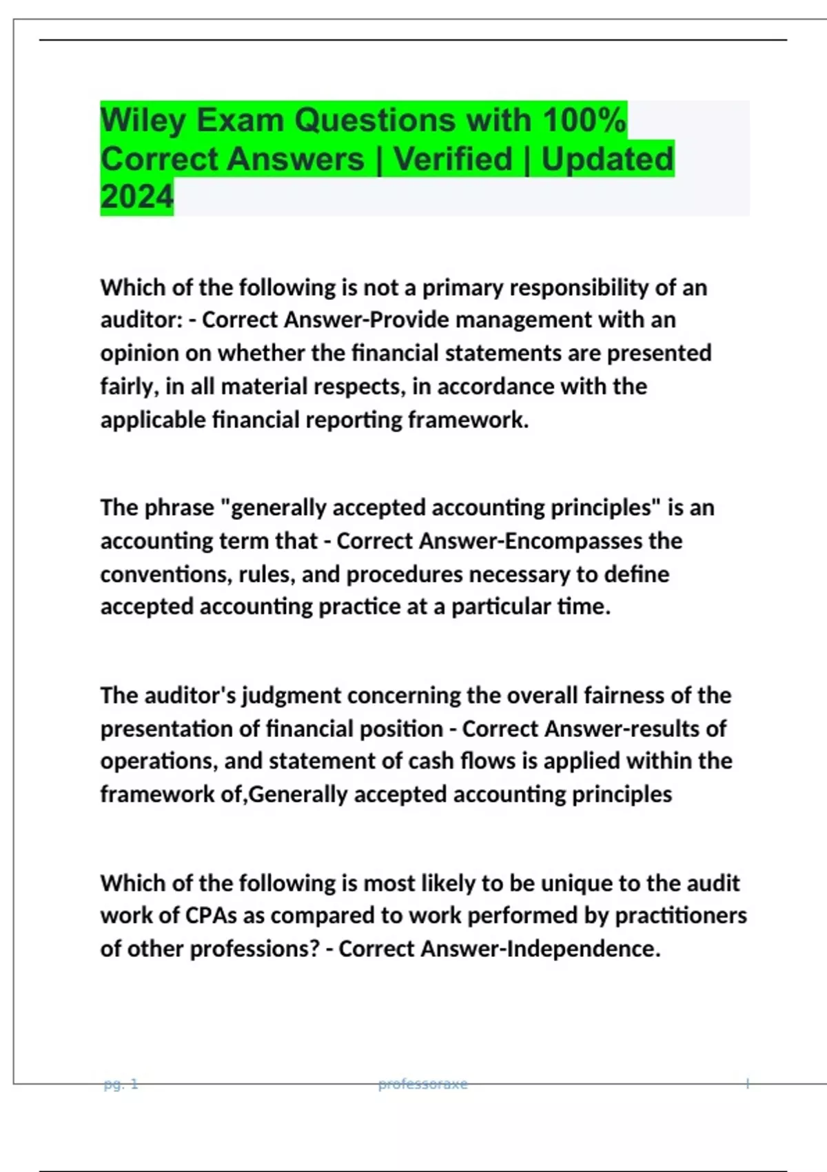 LSU Acct 3222 Wiley Test 1 Questions With 100% Correct Answers | Verified | Updated 2024 Wiley Exam Questions with 100% Correct Answers | Verified | Updated 2024 Wiley Plus Exam 1 Questions With 100% Correct Answers 2024 Wiley Plus Exam 1 Questions And Answers With Complete Solutions 100% Correct | 2024 Acct -Wiley Plus Exam