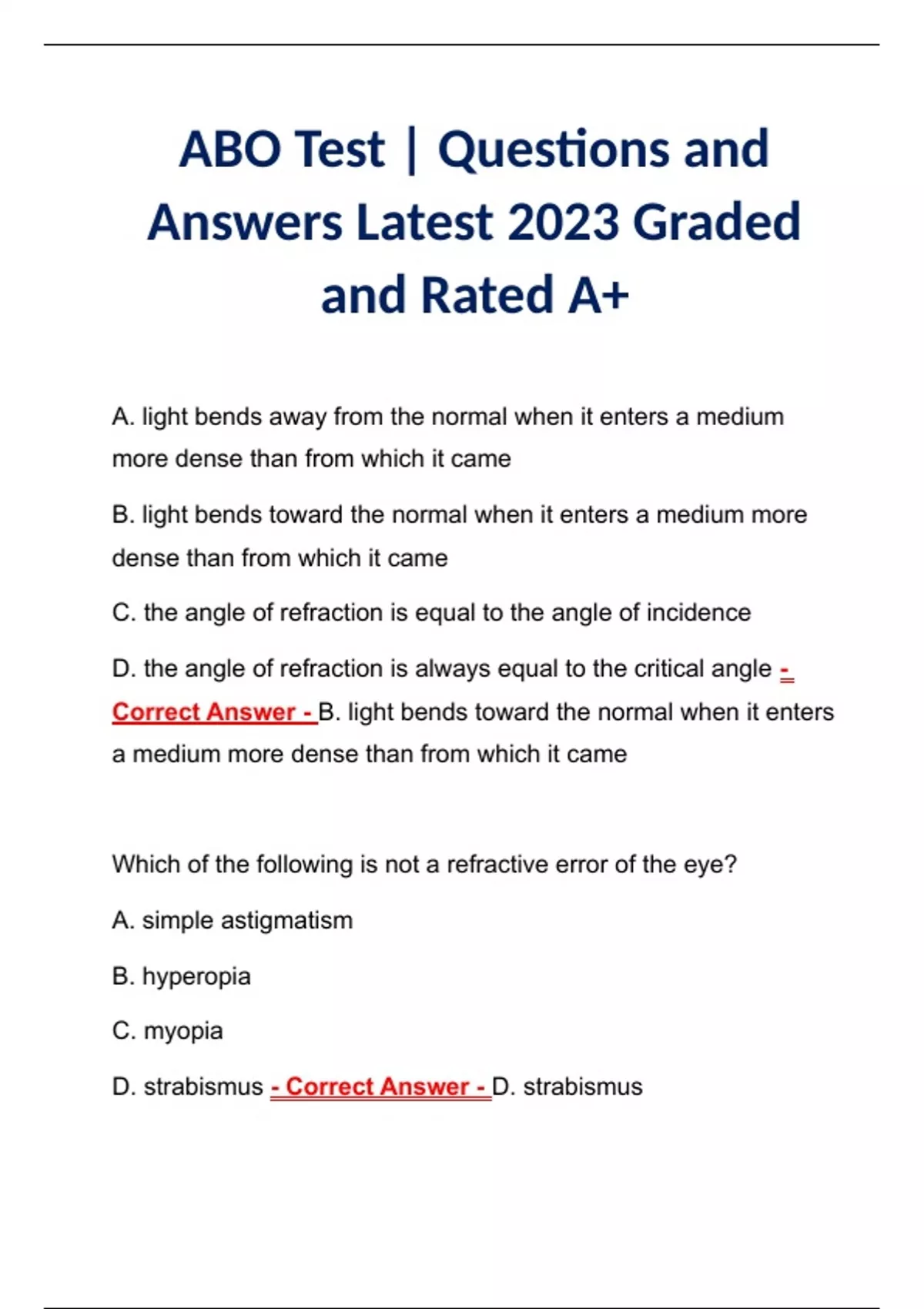 ABO Practice Exam Answered and Graded A+ | Latest 2023