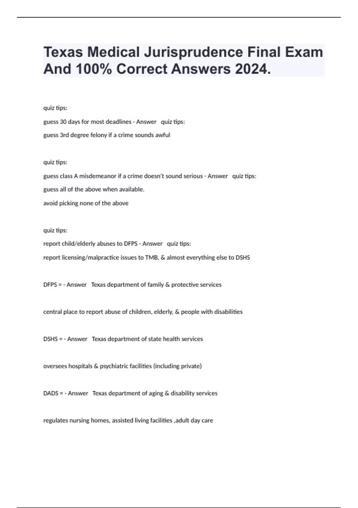 Texas Medical Jurisprudence Final Exam And 100% Correct Answers 2024.