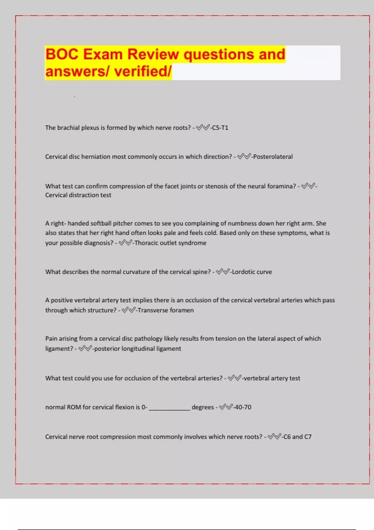 BOC Exam Practice Questions, (Answered) VERIFIED/ / 2024-25 Exam board exam predictions. APPROVED/