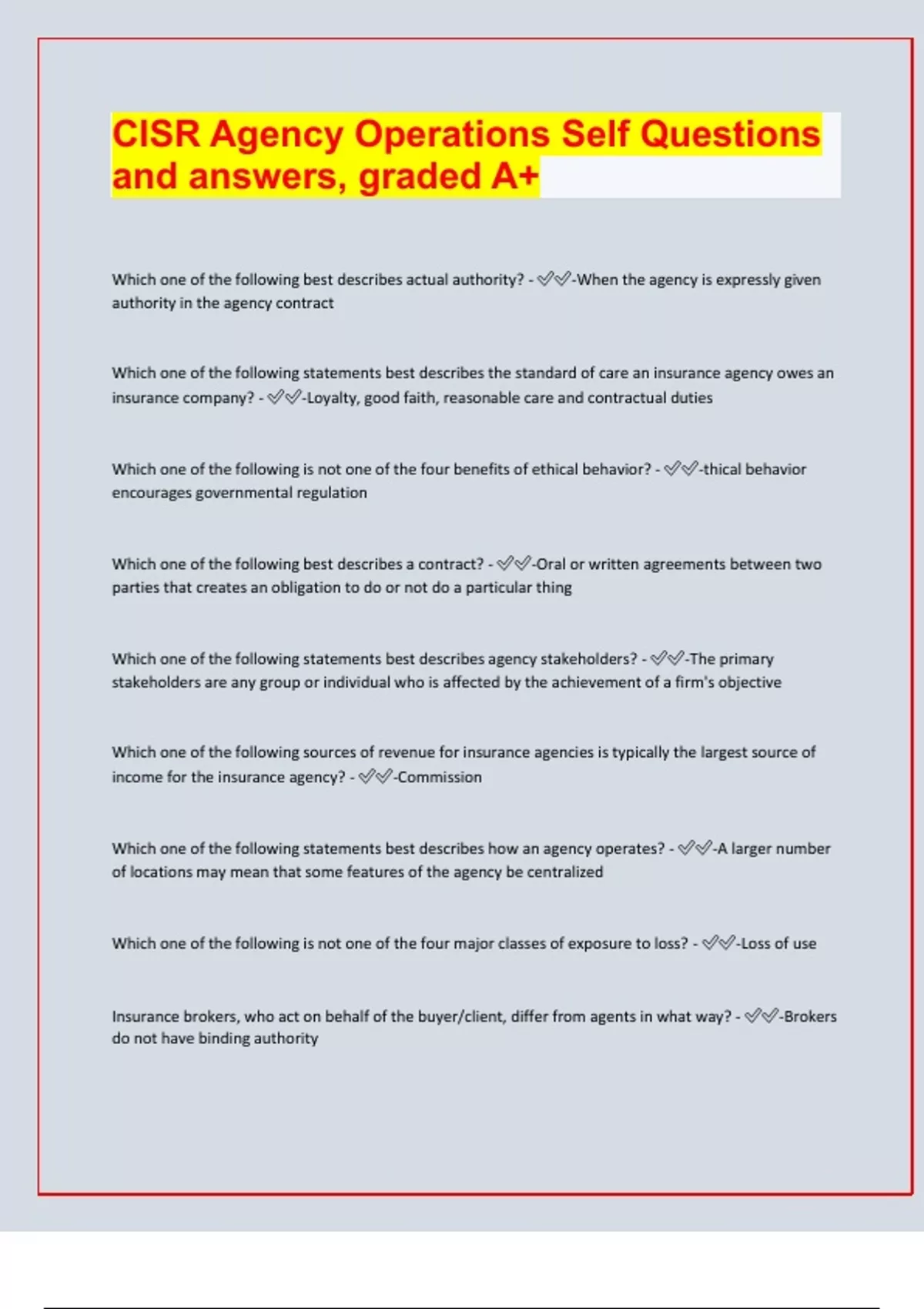 CISR Agency Operations Self Questions and answers, graded A+/ 2024/25 exam prediction paper, RATED A+