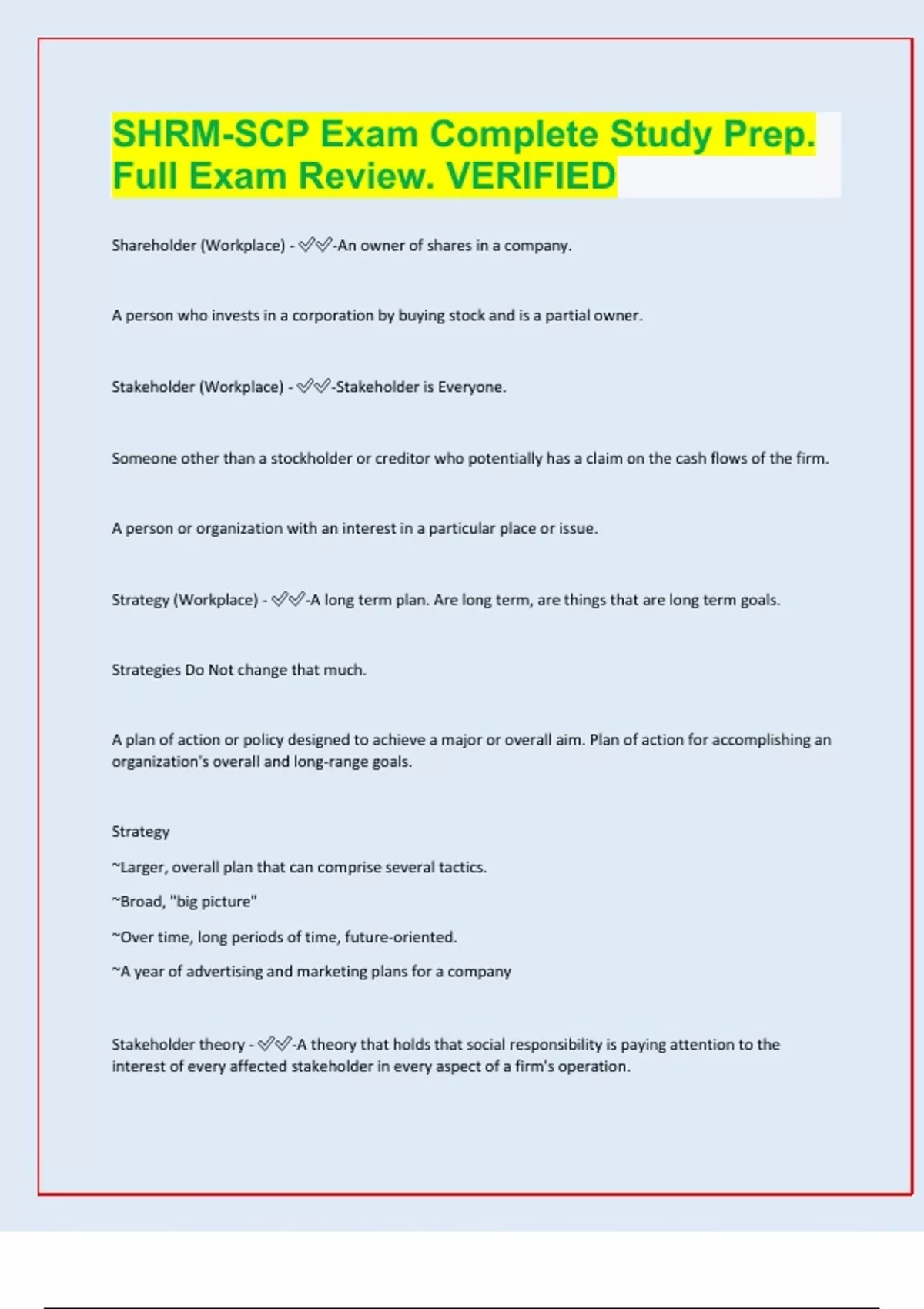 SHRM-SCP Exam Complete Study Prep. Full Exam Review. VERIFIED/ Examinable predictor paper, APPROVED/