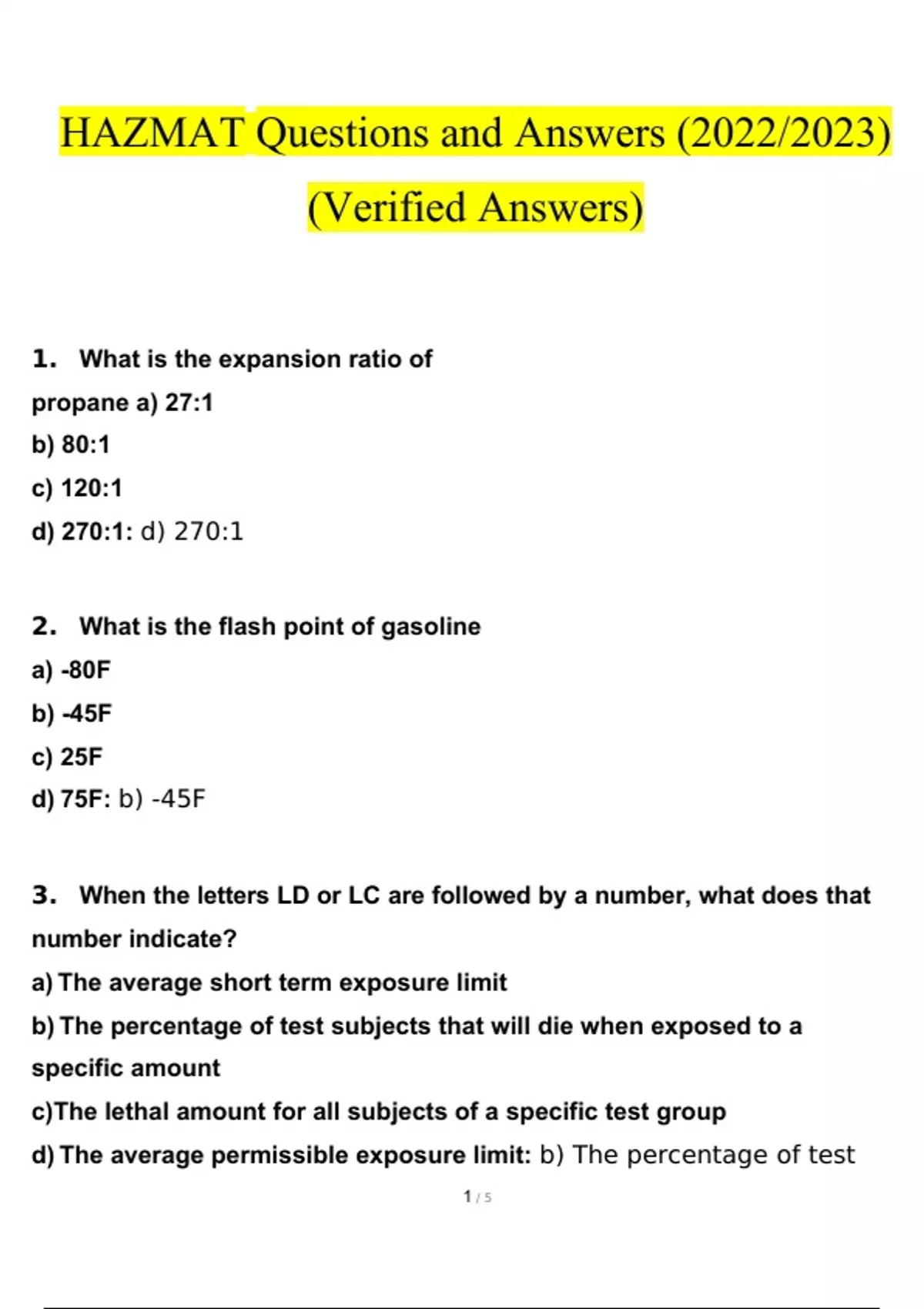HAZMAT STUDY BUNDLE PACK SOLUTION (Questions and Answers )(2024/2025) (Verified Answers) HAZMAT STUDY BUNDLE PACK SOLUTION (Questions and Answers )(2024/2025) (Verified Answers) HAZMAT STUDY BUNDLE PACK SOLUTION (Questions and Answers )(2024/2025) (Verified Answers) HAZMAT STUDY BUNDLE PACK SOLUTION (Questions and Answers )(2024/2025) (Verified Ans