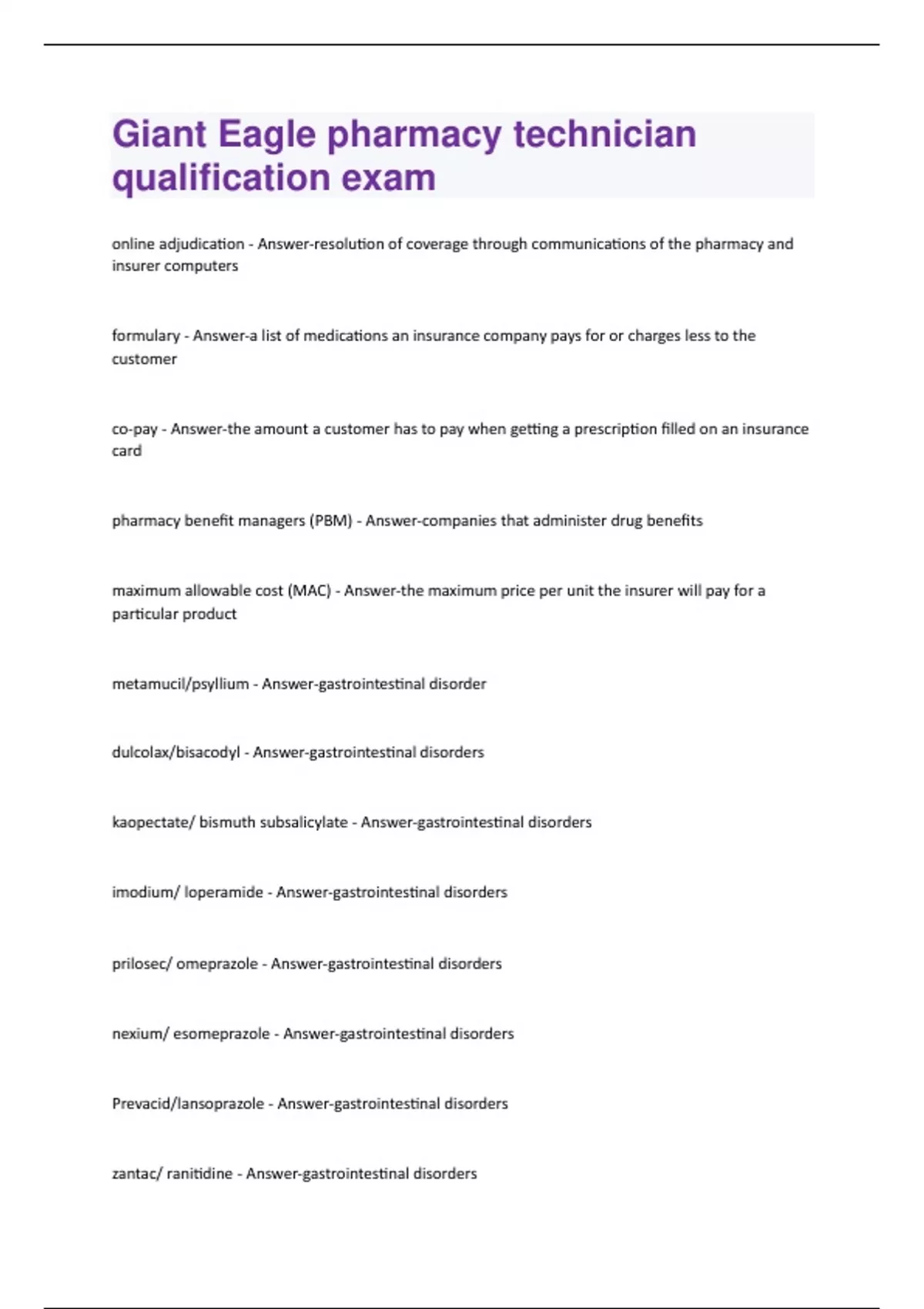 Giant Eagle Pharmacy Tech Qualification Exam (100% correct and graded A+)