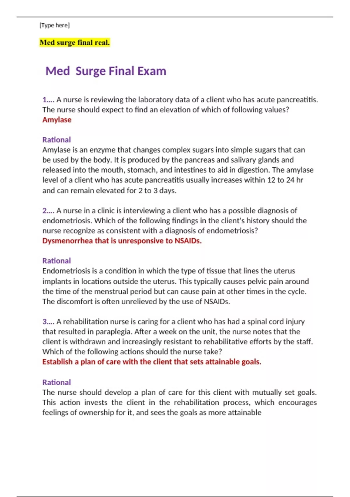 This package deal contains all of medical surgical examinations that have been tested all the years. Download this package deal to ACE your MED exams with ease.