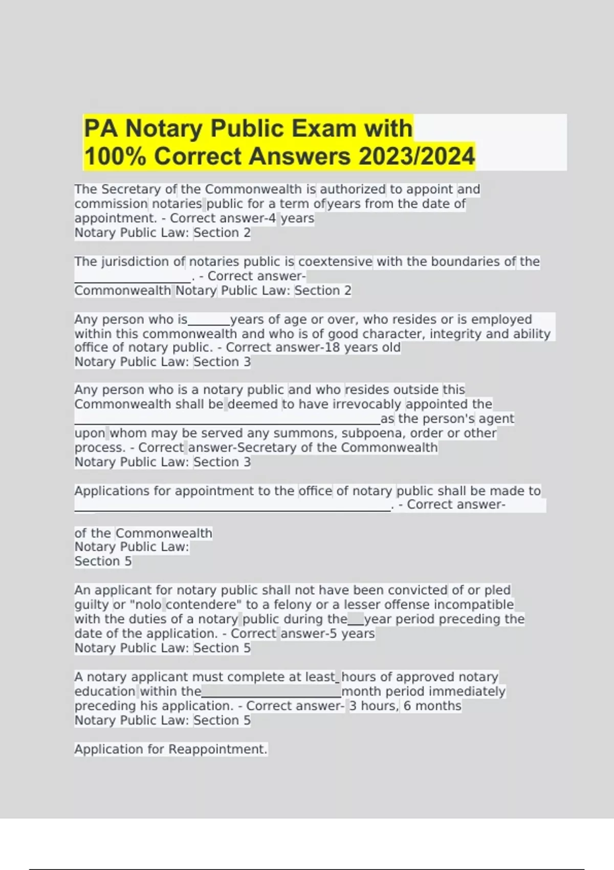 Notary Exam Practice Questions with Verified SolutionsNotary Exam Practice Questions with Verified Solutions