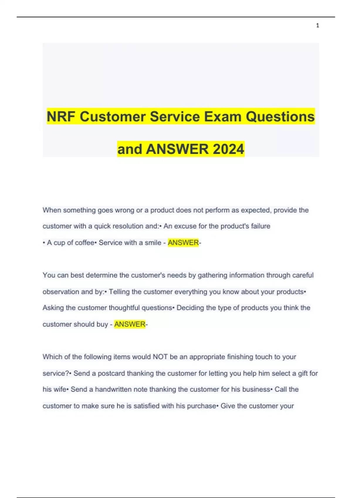 NRF Customer Service Exam Questions and ANSWER NRF Customer Service Exam Questions and ANSWER UPDATED 2024