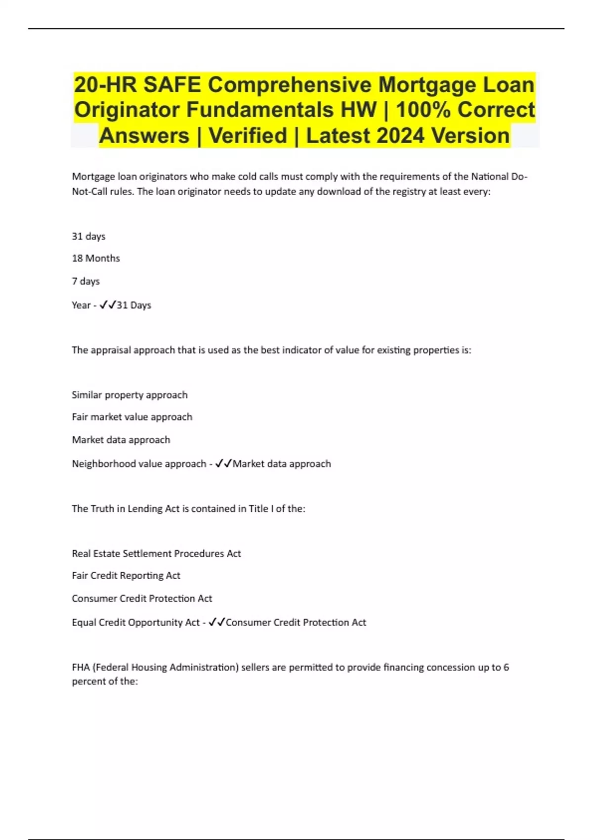 Mortgage Loan Originator Safe Exam Prep | 100% Correct Answers | Verified | Latest 2024 Version