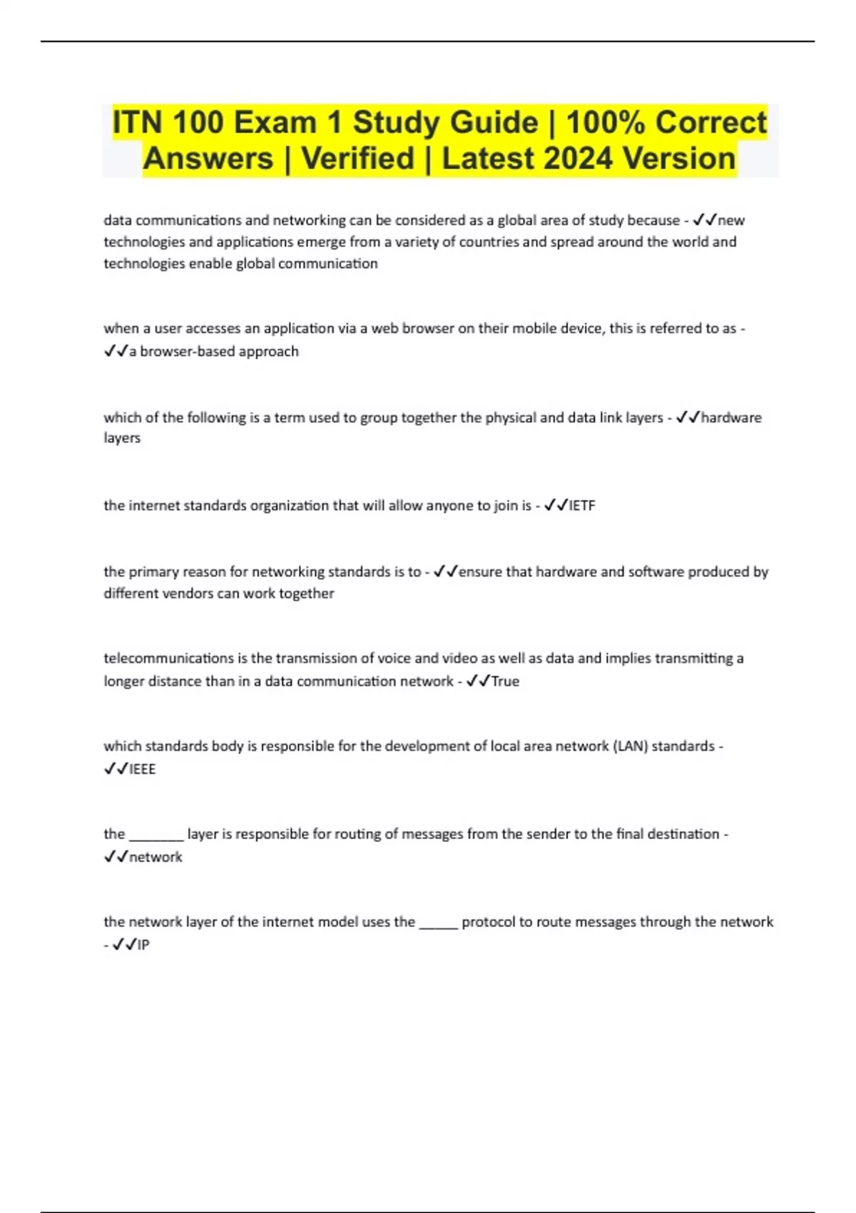 ITN 100 Bundled Exams with Complete Solution | Verified Answers | 2024