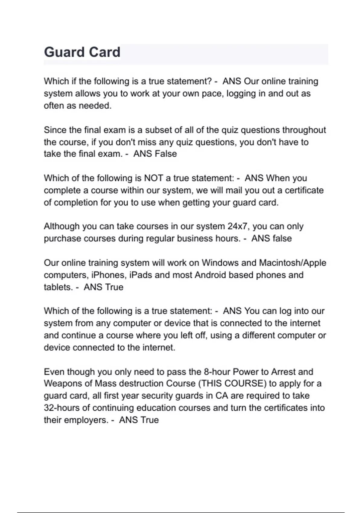 Guard Card Tests Actual Exams Questions with correct Answers 2024/2025( A+ GRADED 100% VERIFIED)!! ALL BUNDLED HERE!!!..