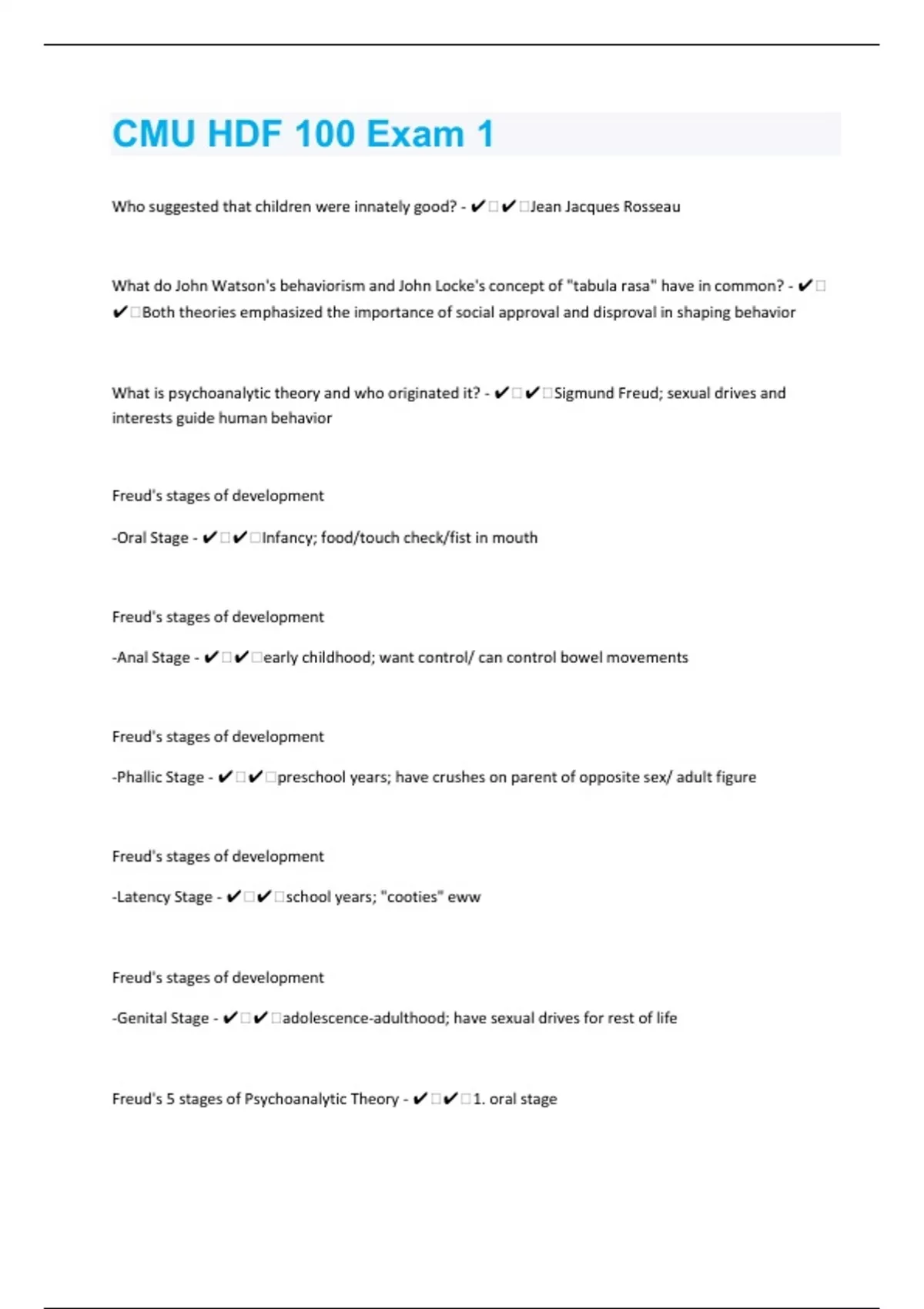 CMU HDF 100|66 Exam 1 Questions With Complete Solutions