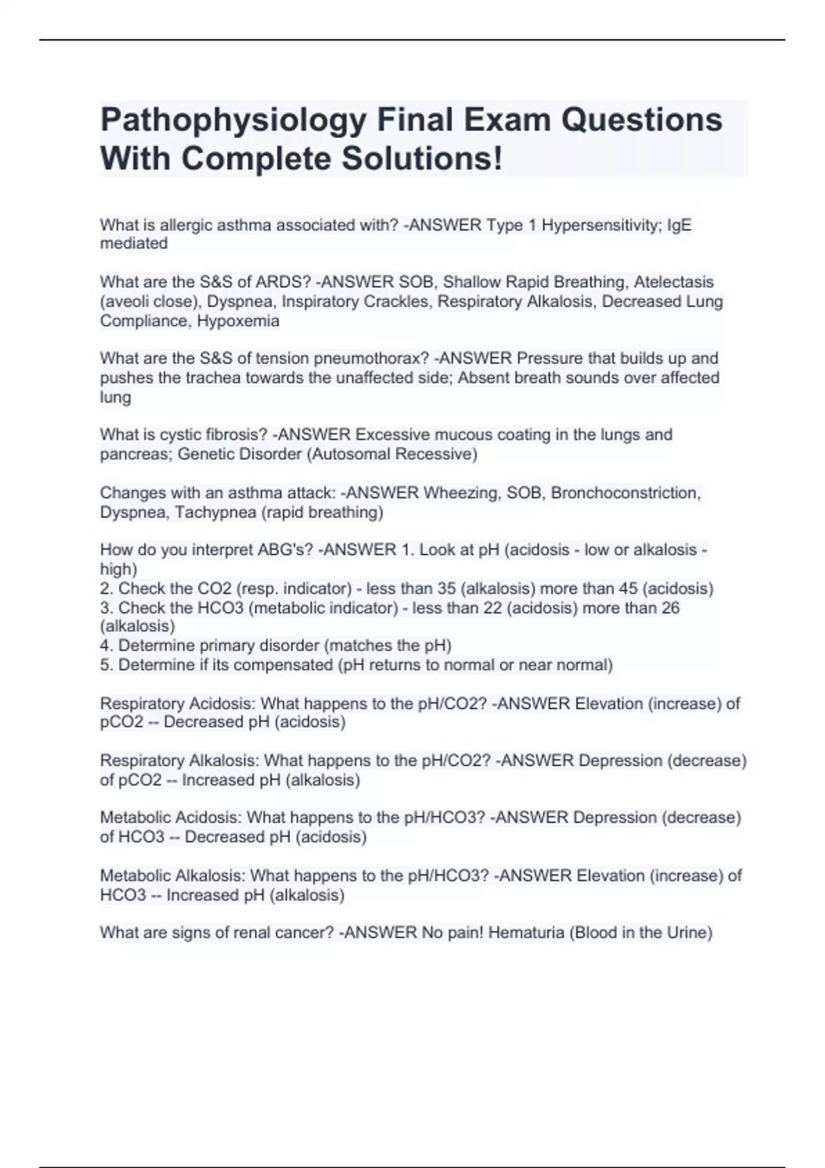 Pathophysiology FINAL EXAM Review Questions & Answers(SCORED A)