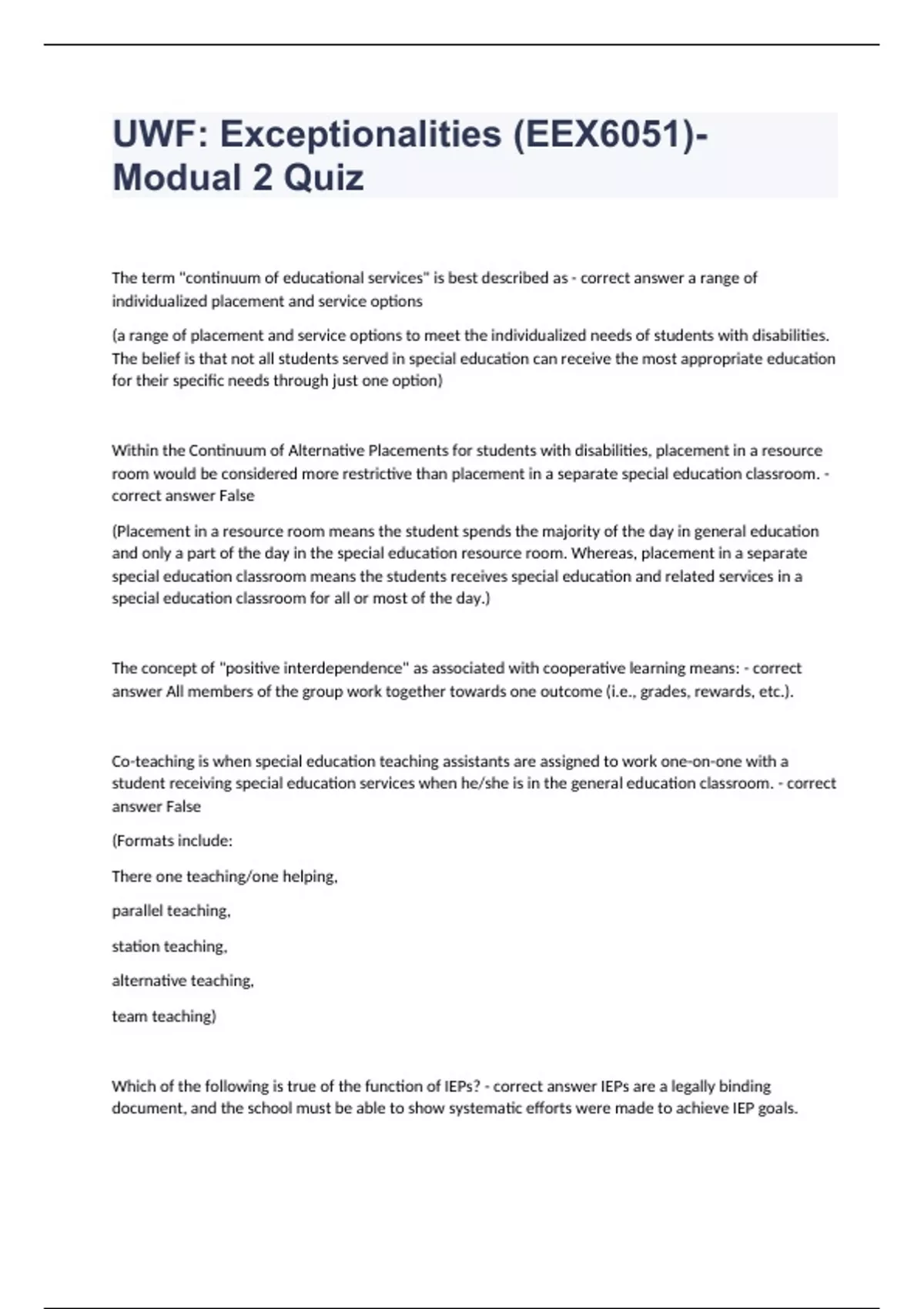 PACKAGE DEAL OF UWF EDF QUESTIONS WITH COMPLETE SOLUTION 2024