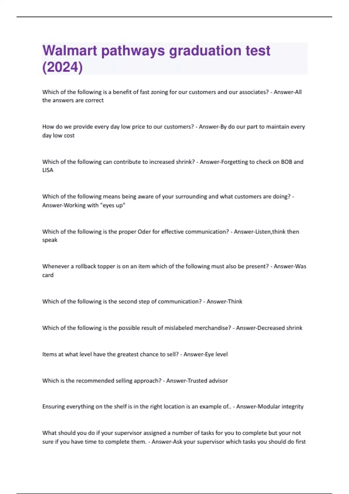 Walmart pathways graduation test (2024)Latest Questions & Answers Verified 100% Correct!!