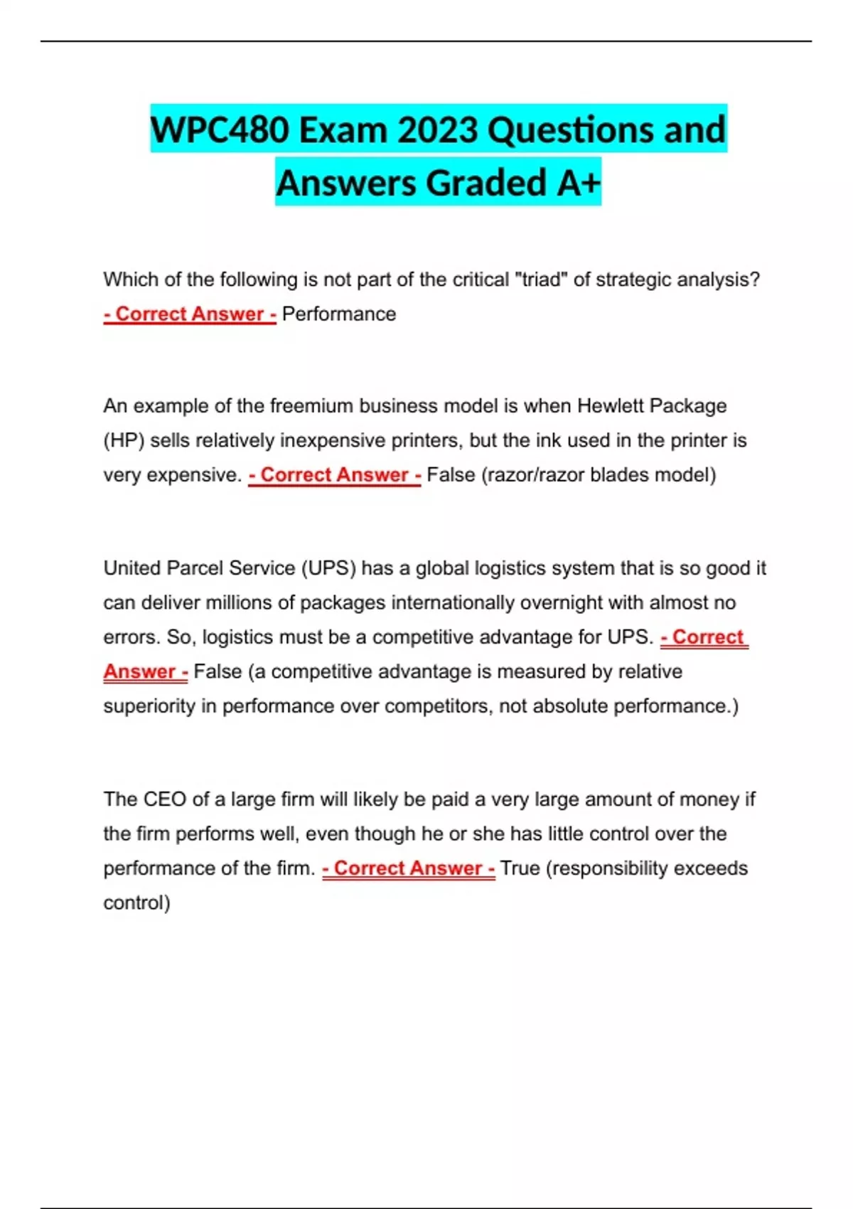 WPC 480 Exam| Practice Questions and Correct Answers With Rationale | Perfect Guide for Revision