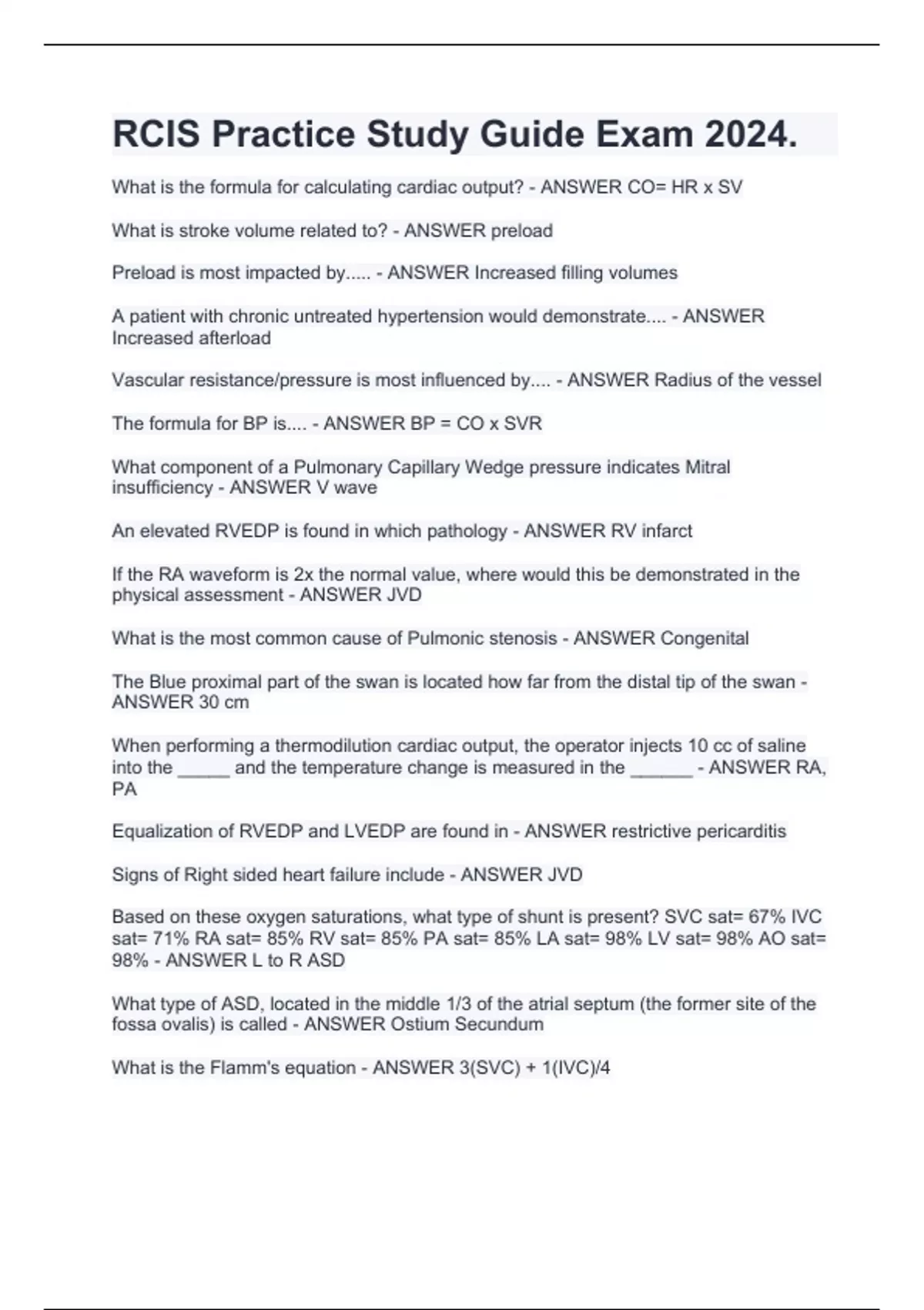 1 Exam (elaborations) CARD 121 Vital Signs Exam Preparation 2024. 2 Exam (elaborations) Hemodynamic Monitoring Exam Questions And Answers 2024. 3 Exam (elaborations) Health History Abbreviations CARD 121 EXAM 2024. 4 Exam (elaborations) CARD 120 Basic Arrhythmias CH, 1 Questions 2024. 5 Exam (elaborations) Cardiovascular Pathology Final Exam Pr