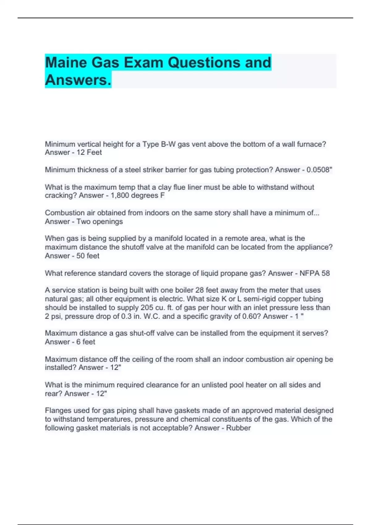 Maine Gas Exam Questions and Answers,Intro to Gas fitting Fundamentals-Self Test Questions and Answers,Gas Technician G2 License Exam Questions and Answers,Gas Tech II Exam Questions and Answers,Gas Piping Test Questions and Answers,Gas Fitting Review Questions with Complete Answers,Gas Fitting Review Questions and Answers,