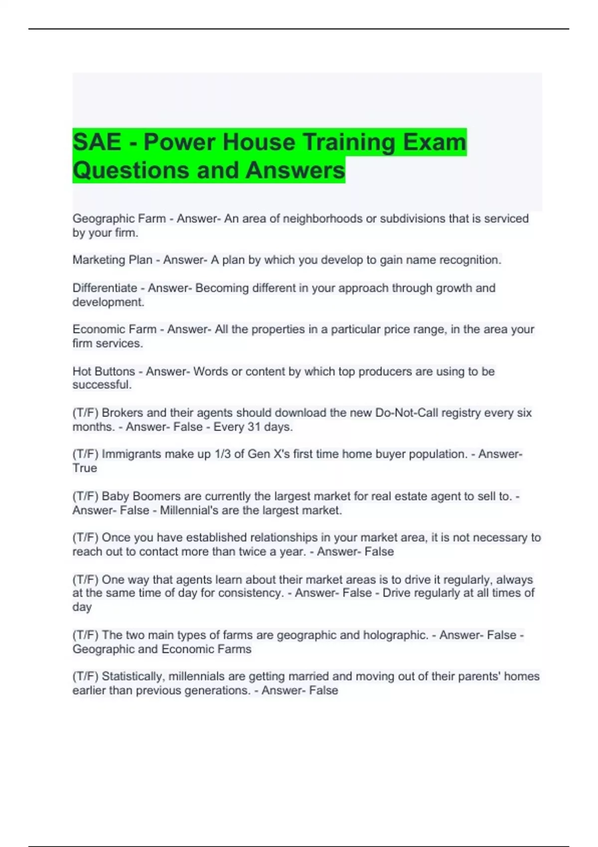 1 Exam (elaborations) SAE - Power House Training Exam Questions and Answers 2024 2 Exam (elaborations) Real Estate Marketing Power House Training Exam 2024 Questions and Answers 3 Exam (elaborations) Real Estate Marketing Power House Training Exam with correct Answers 4 Exam (elaborations) Real estate Marketing Power House Training (SAE)- OC Exa