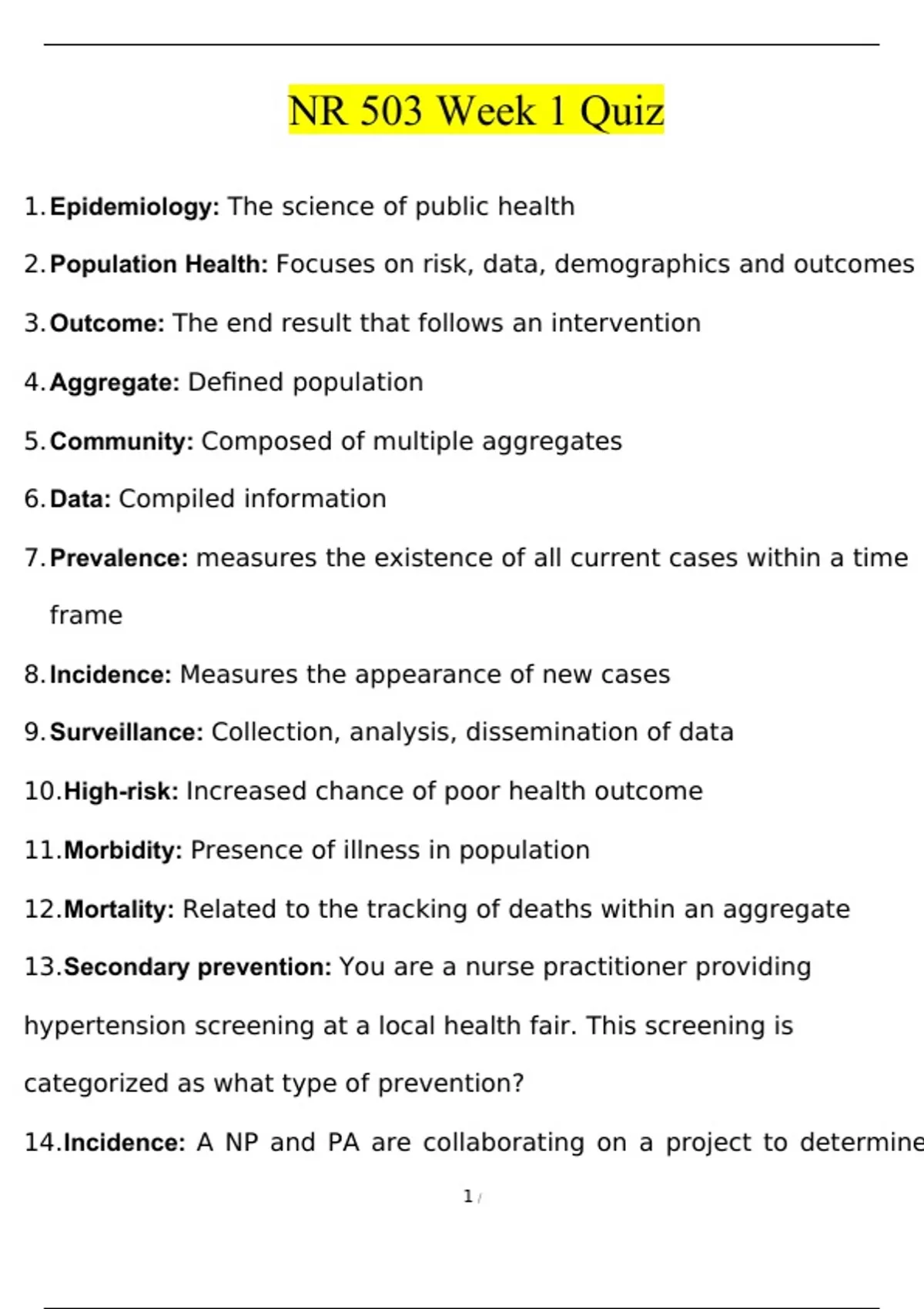 NR 503 Week 1 Quiz Exam Questions and Answers (2024/2025)(Verified Answers)