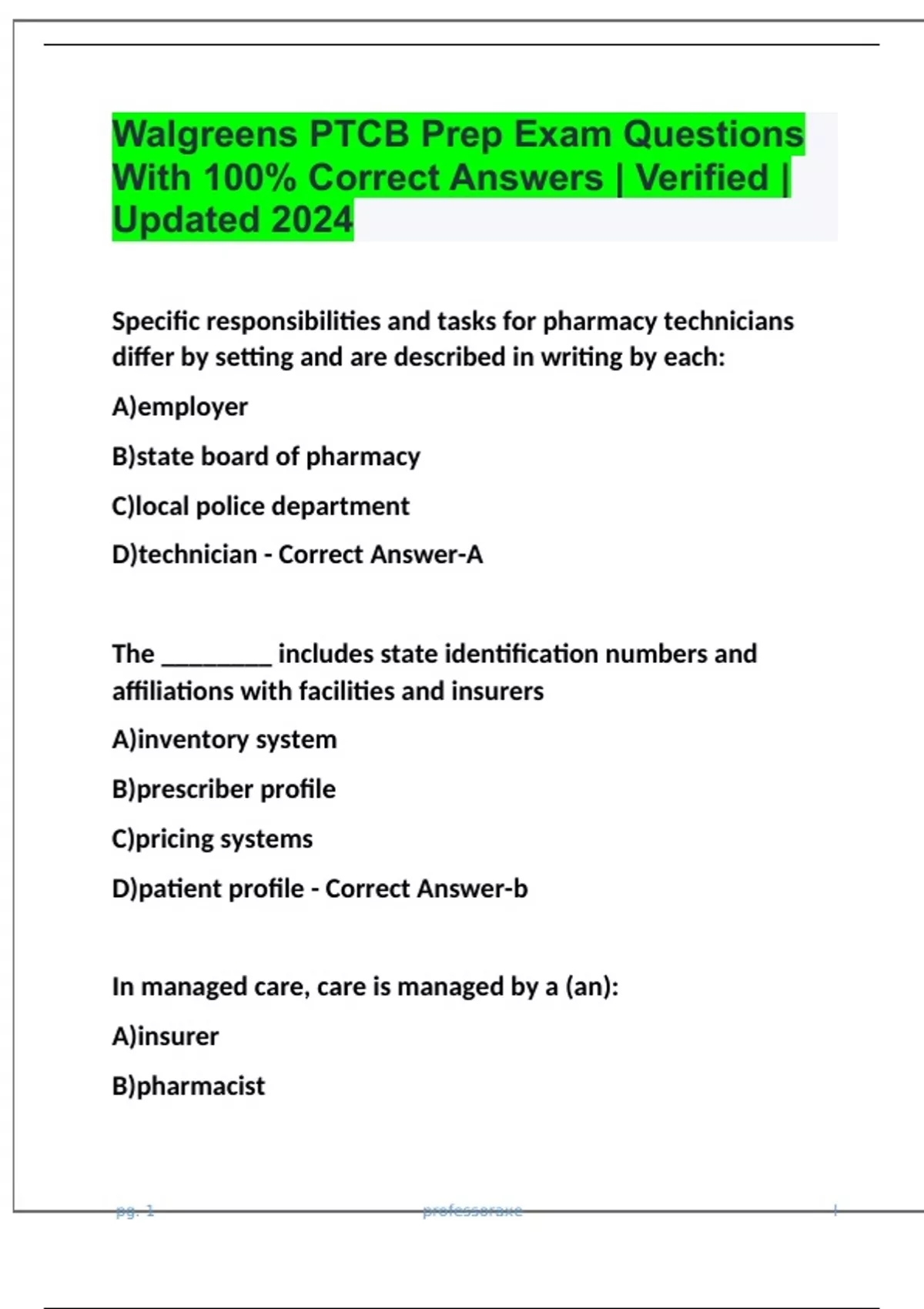 Package deal for Walgreens PTCB Prep Exam Questions With 100% Correct Answers | Verified | Updated 2024