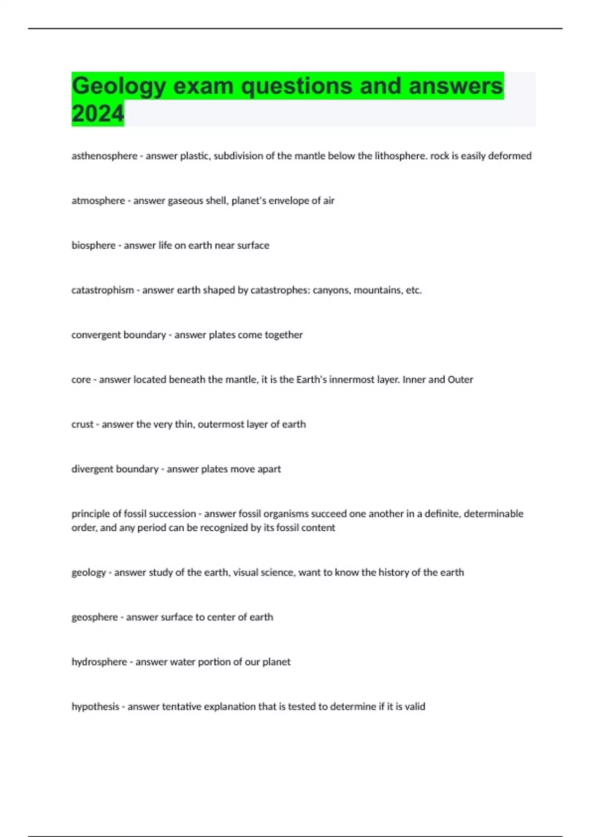 A GEOLOGY EXAMS COMPLETE PACKAGE DEAL 2024/25|ALL VERIFIED FOR ACCURACY|100% PASS