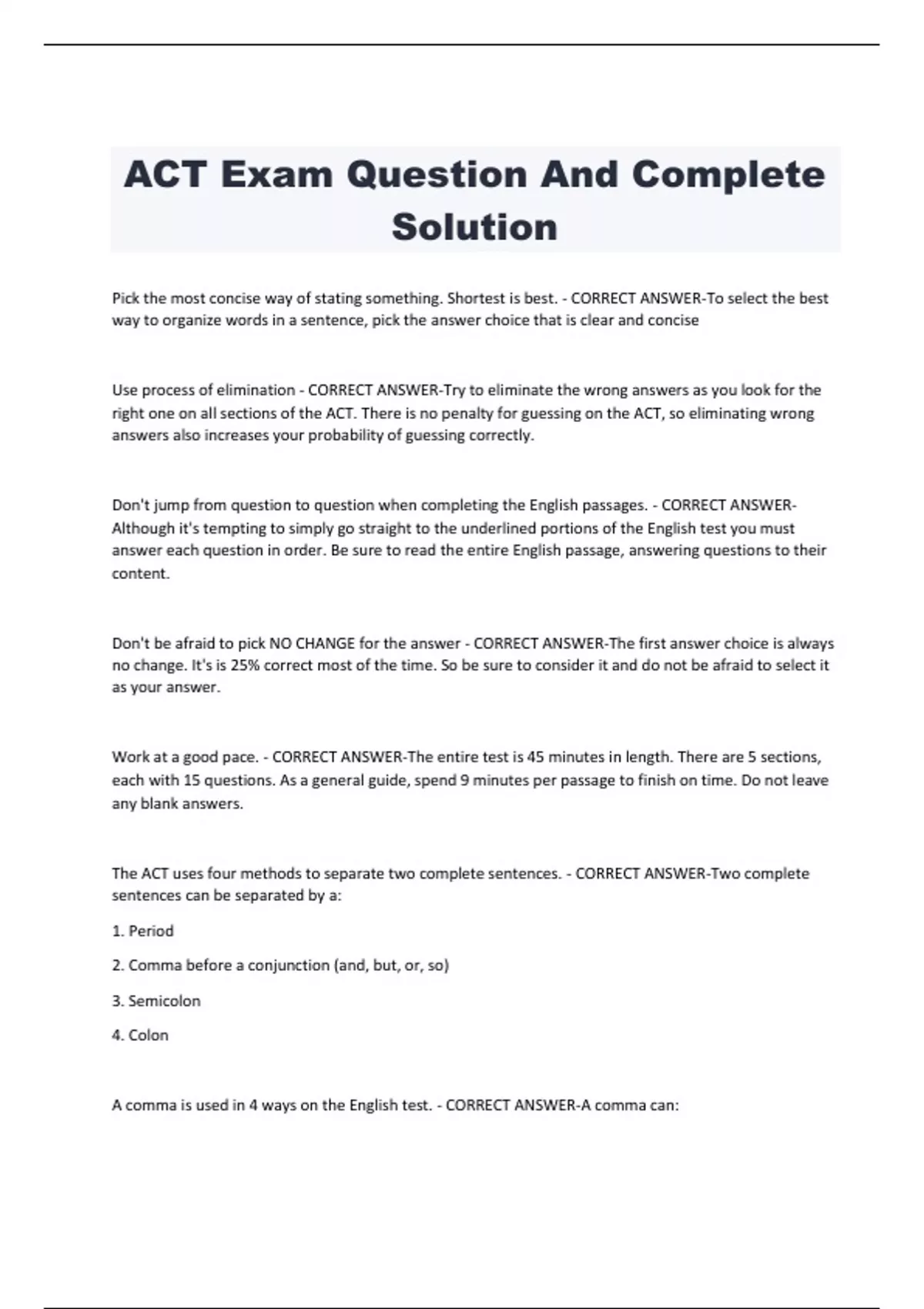 ACT English Practice Exam With Verified Solution ACT English Study Guide Exam With Correct Answers ACT English Test Cover Exam With Question & Answer 2024 ACT Exam Practice With 100% Correct Answers (Latest) ACT Exam With Question & Complete Solution ACT Math Comprehensive Test Exam With Verified Answers 100% Correct ACT Math Formulas W