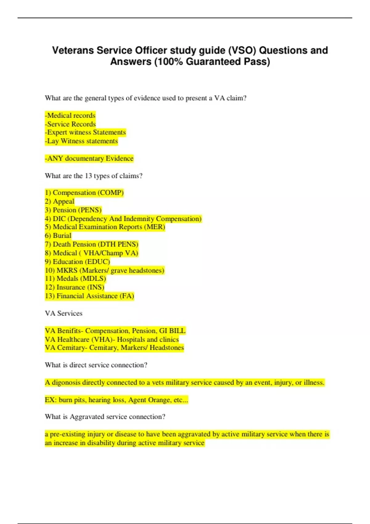 National Association of County Veterans Service Officers Exam (Latest 2024/ 2025 Updates STUDY PACKAGE DEAL WITH COMPLETE SOLUTIONS)| Questions and Verified Answers