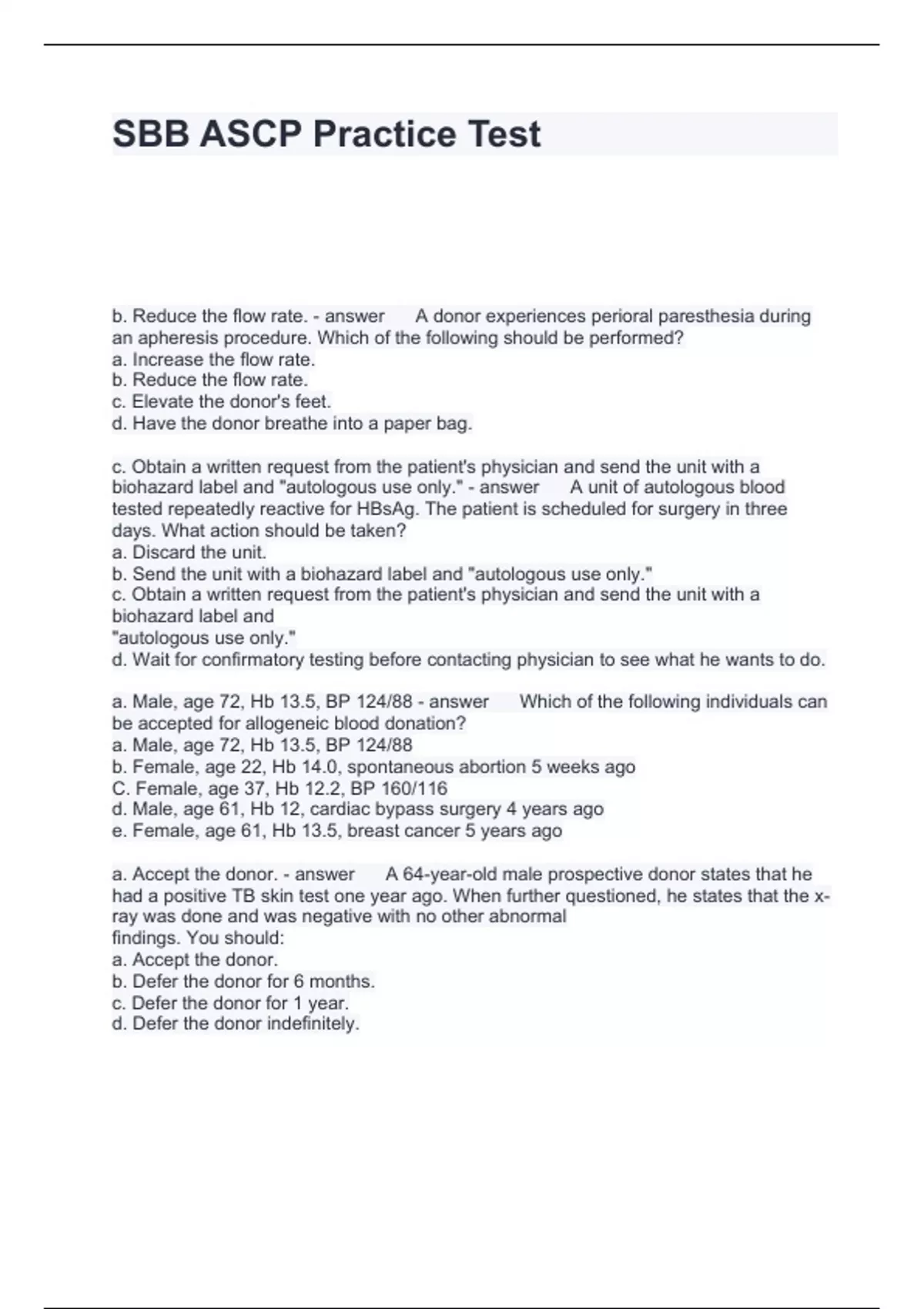 Exam (elaborations) (MB) ASCP Practice Exam Questions and Answers 2024 Exam (elaborations) ASCP BOC EXAM Study Guide from the mobile app Questions and Answers Fully solved Exam (elaborations) ASCP BOC Practice Exam Questions and Answers 2024 Exam (elaborations) ASCP Certification Exam Practice Questions Questions with solutions 2024 Exam (