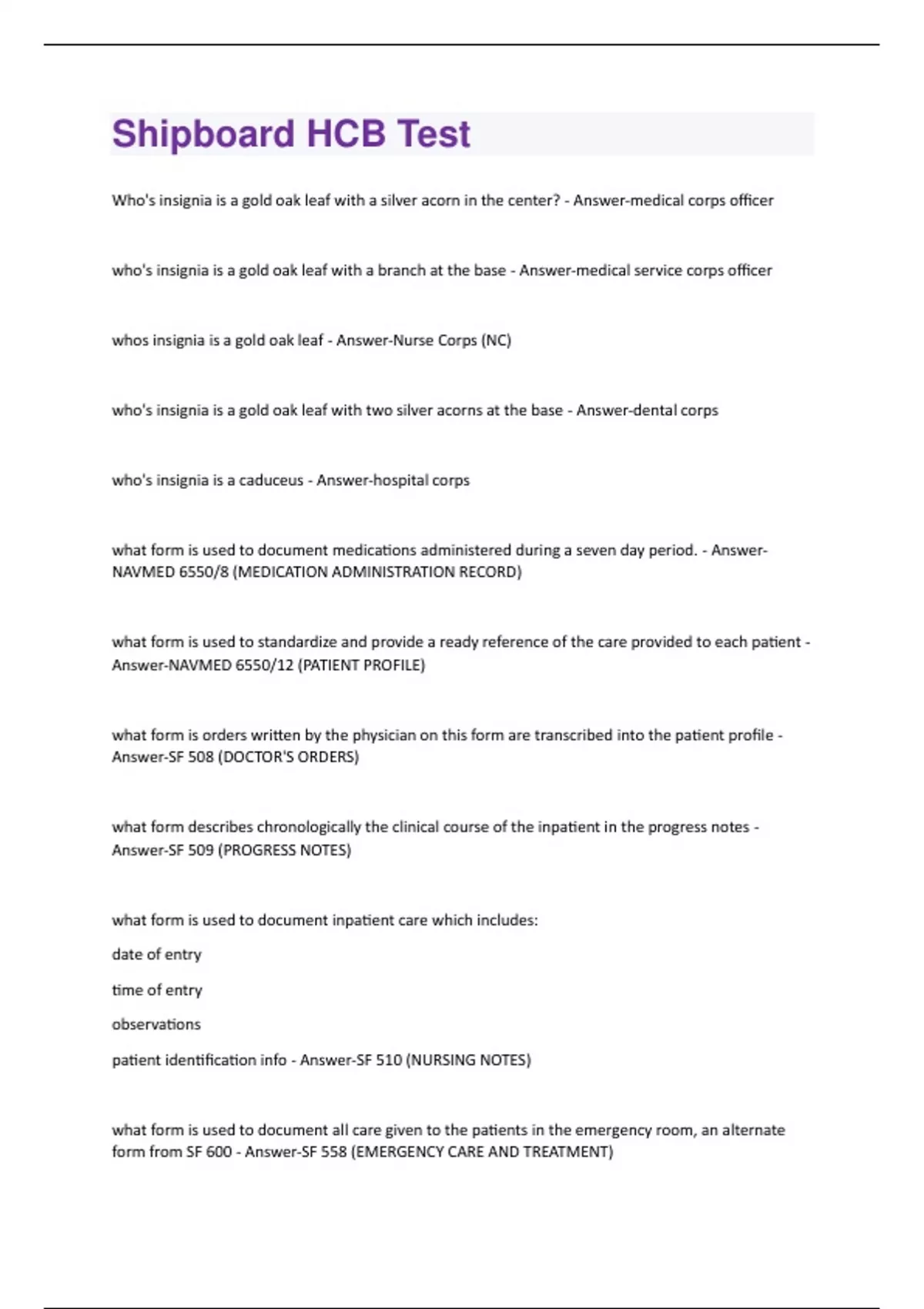 Shipboard HCB Test Questions And Answers With Complete Solutions