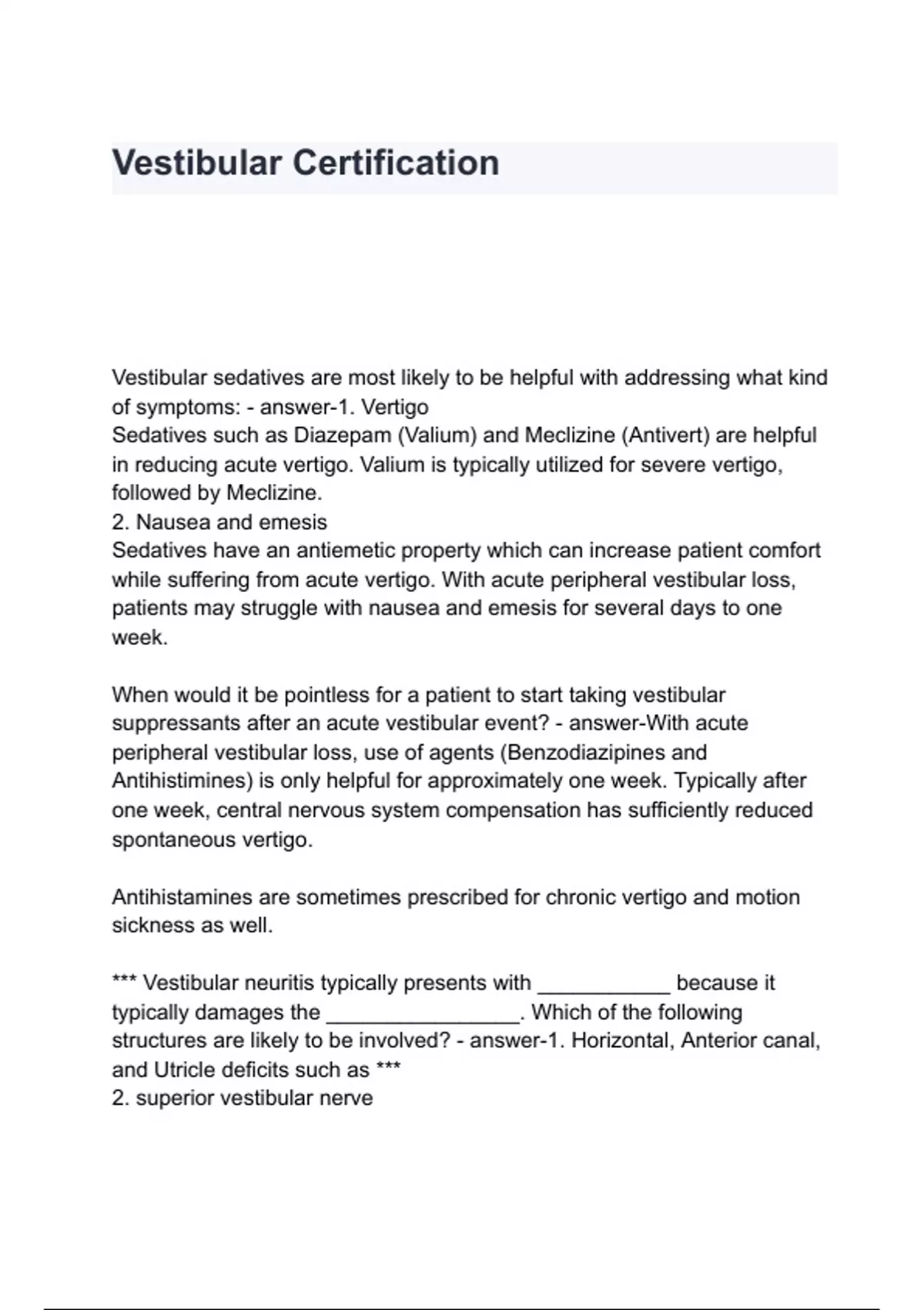 Vestibular Exam & Treatment