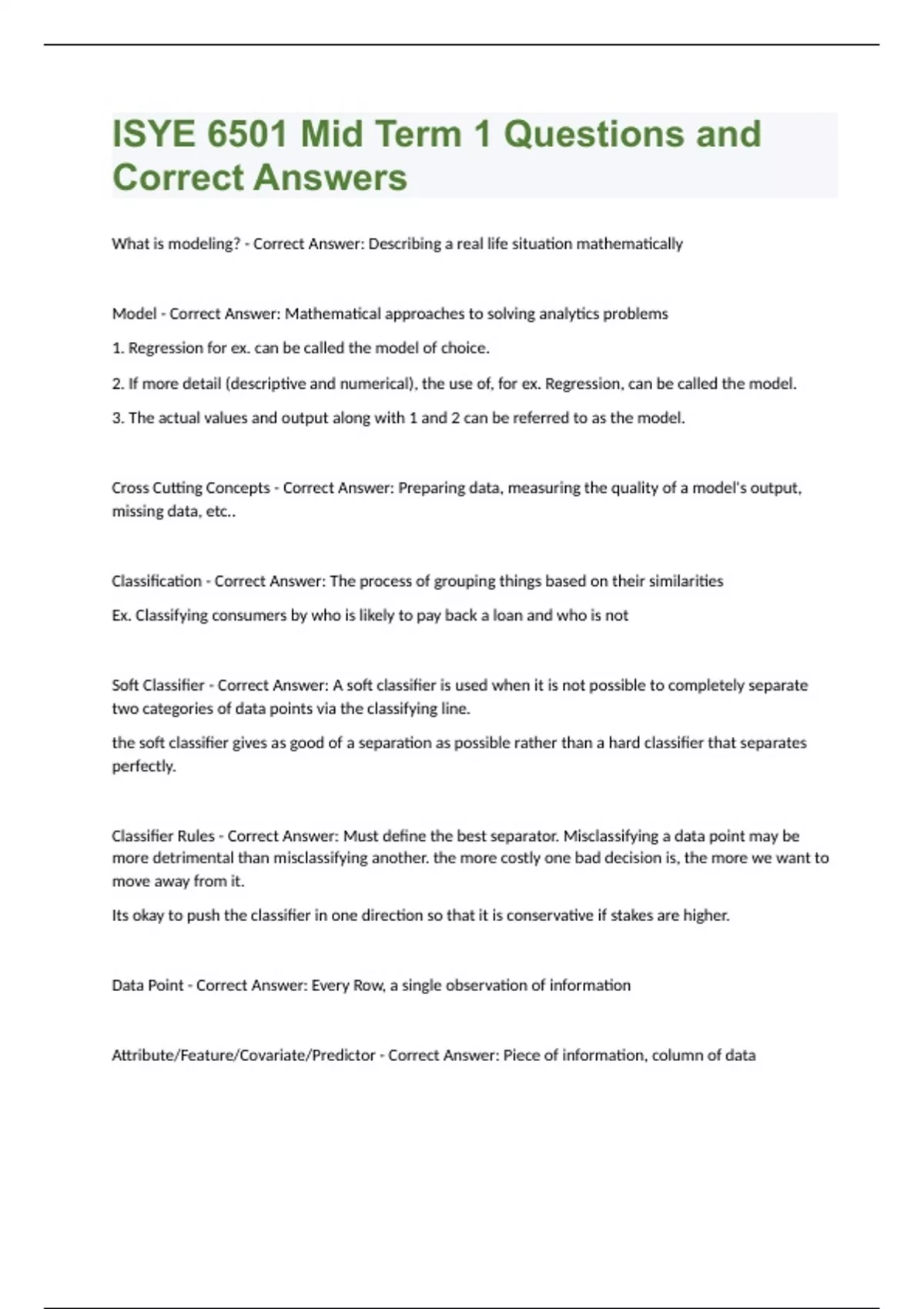 Isye 6501 Final exam Questions and Correct Answers Bundle Compilation Graded A+