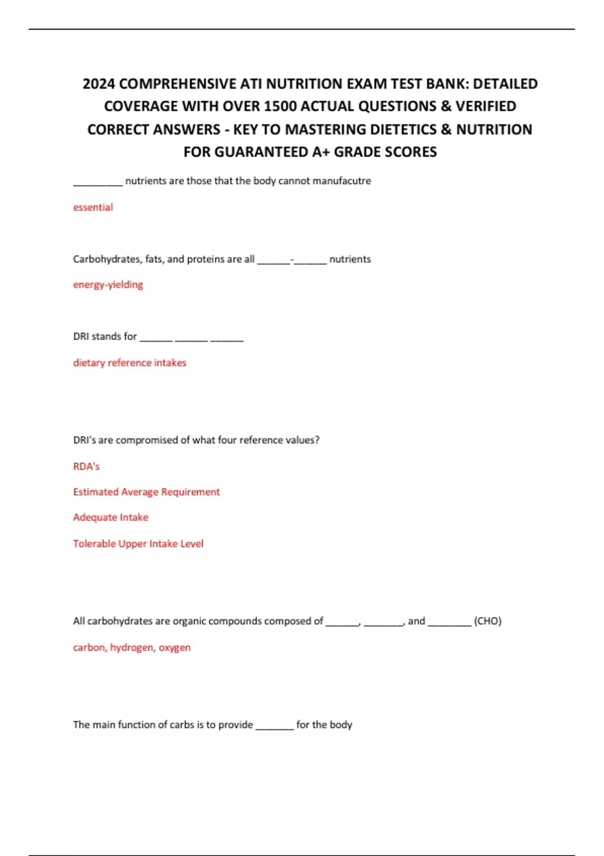 2024 Ultimate ATI Nutrition Exam Mastery Collection: Comprehensive Test Banks & In-Depth Study Resources with Over 5000+ Expert Questions & Answers - Complete Coverage for Dietetics, Clinical Competencies, and NGN Material for Guaranteed A+ Performance