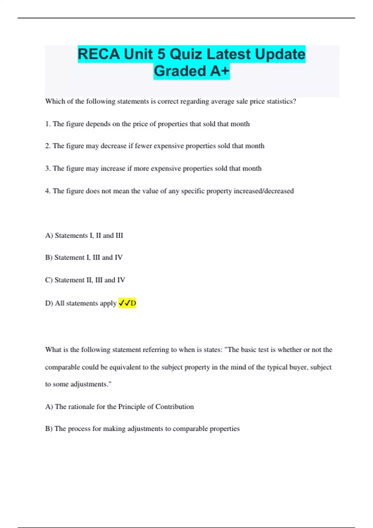 RECA Bundled Exams Questions and Answers Multiple Versions (2024/2025) (Complete and Accurate)