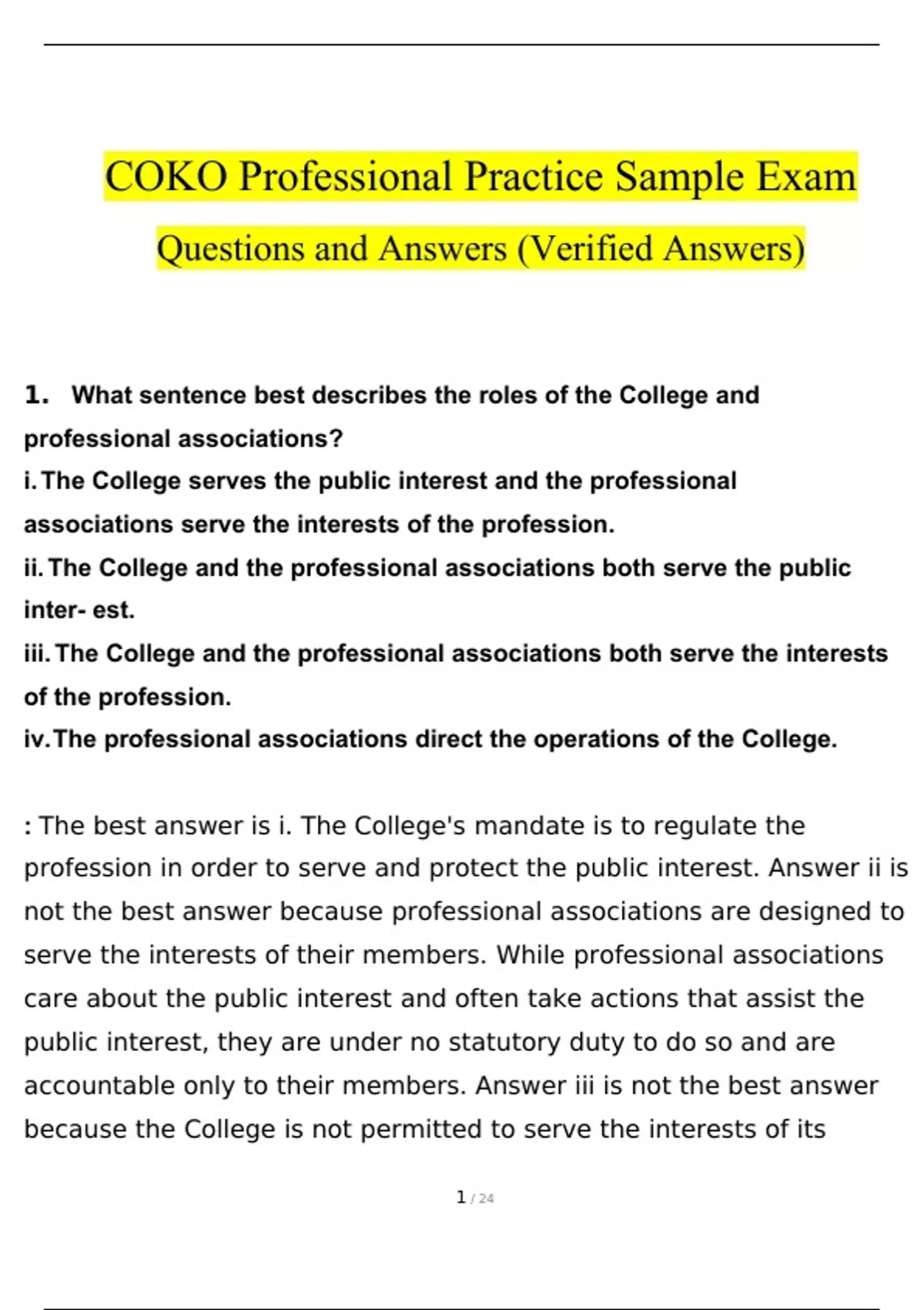 COKO Professional Practice Sample Exam Questions and Answers (2024 / 2025) (Verified Answers)