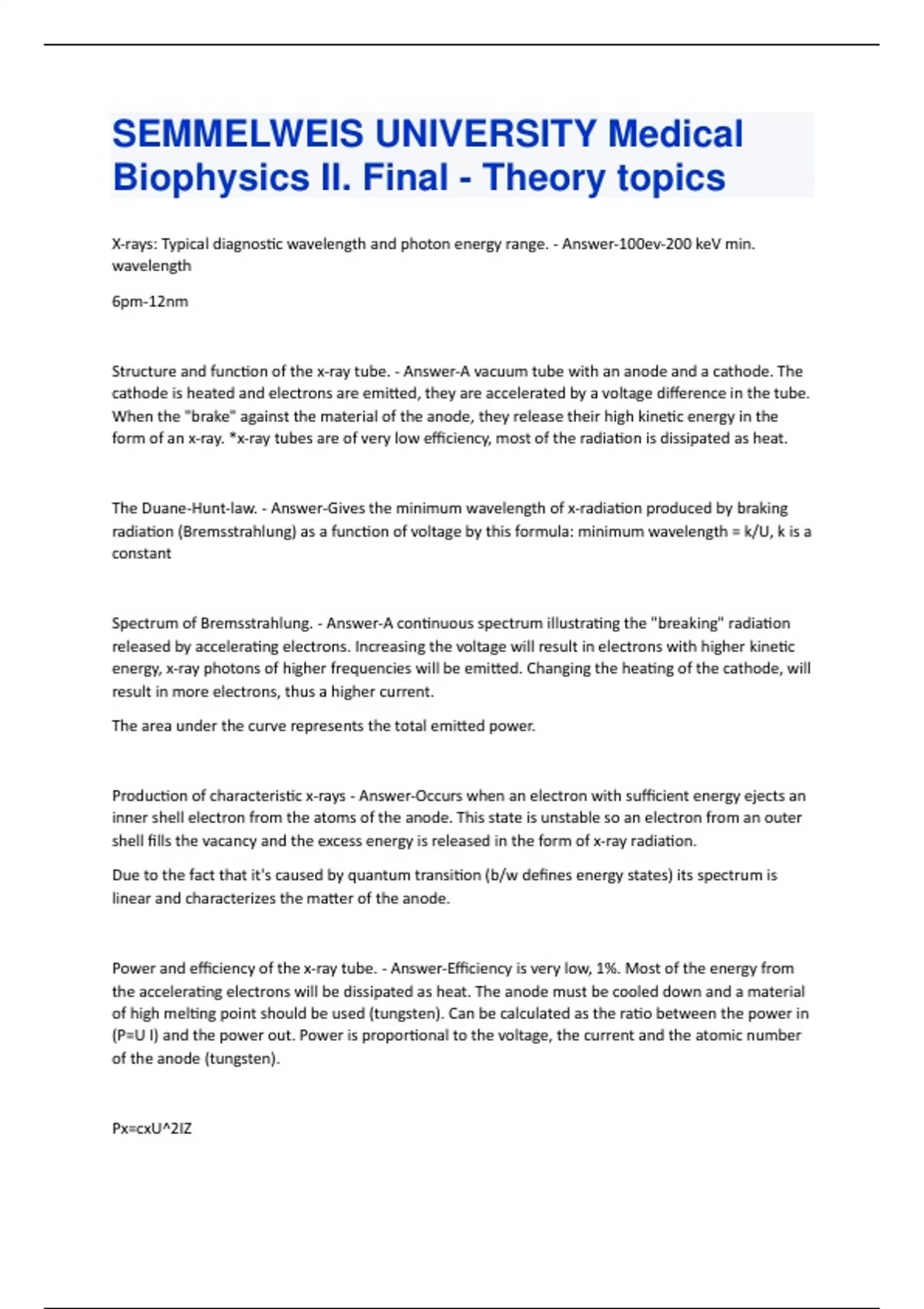 SEMMELWEIS UNIVERSITY Medical Biophysics II. Final - Theory topics Questions and Answers with complete solutions