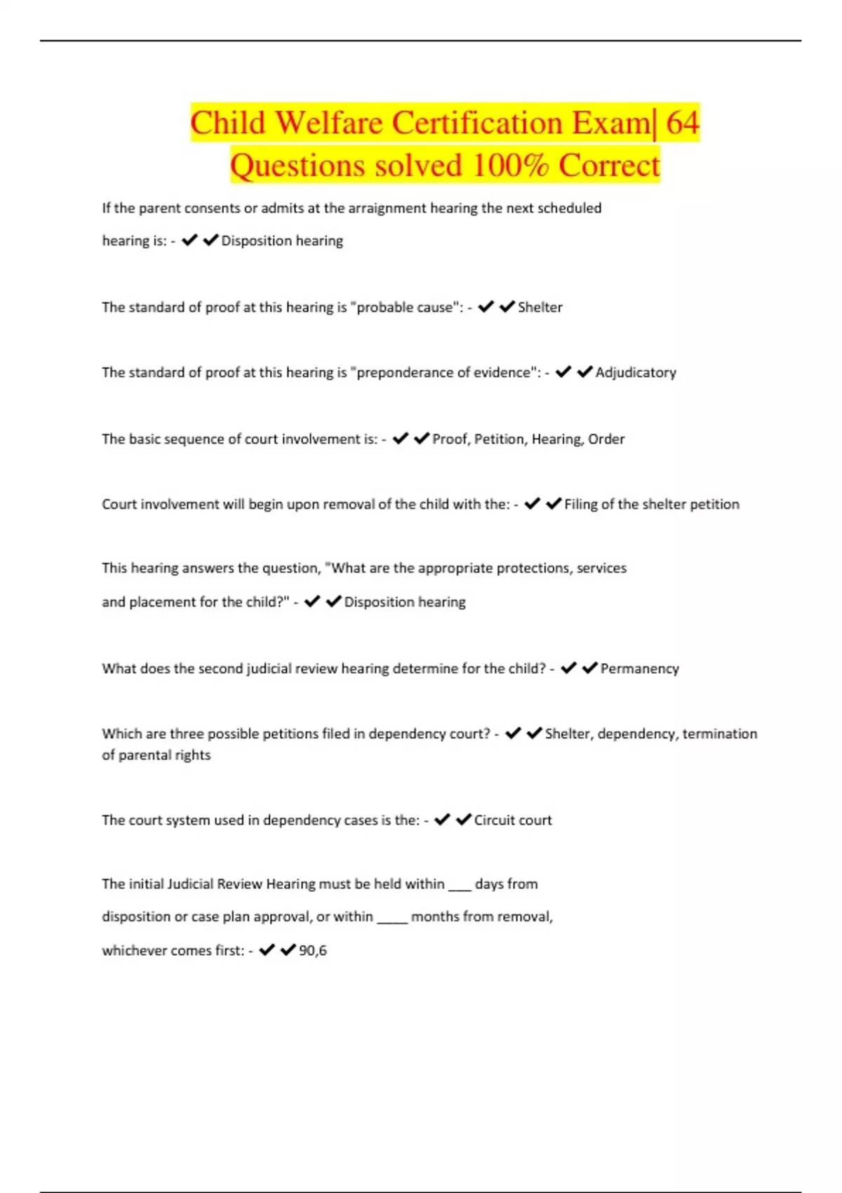 Child Welfare Certification Exam| 64 Questions solved 100% Correct