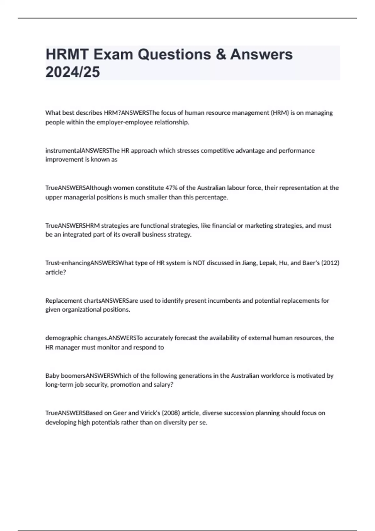 HRMT Exam Questions & Answers 2024/25