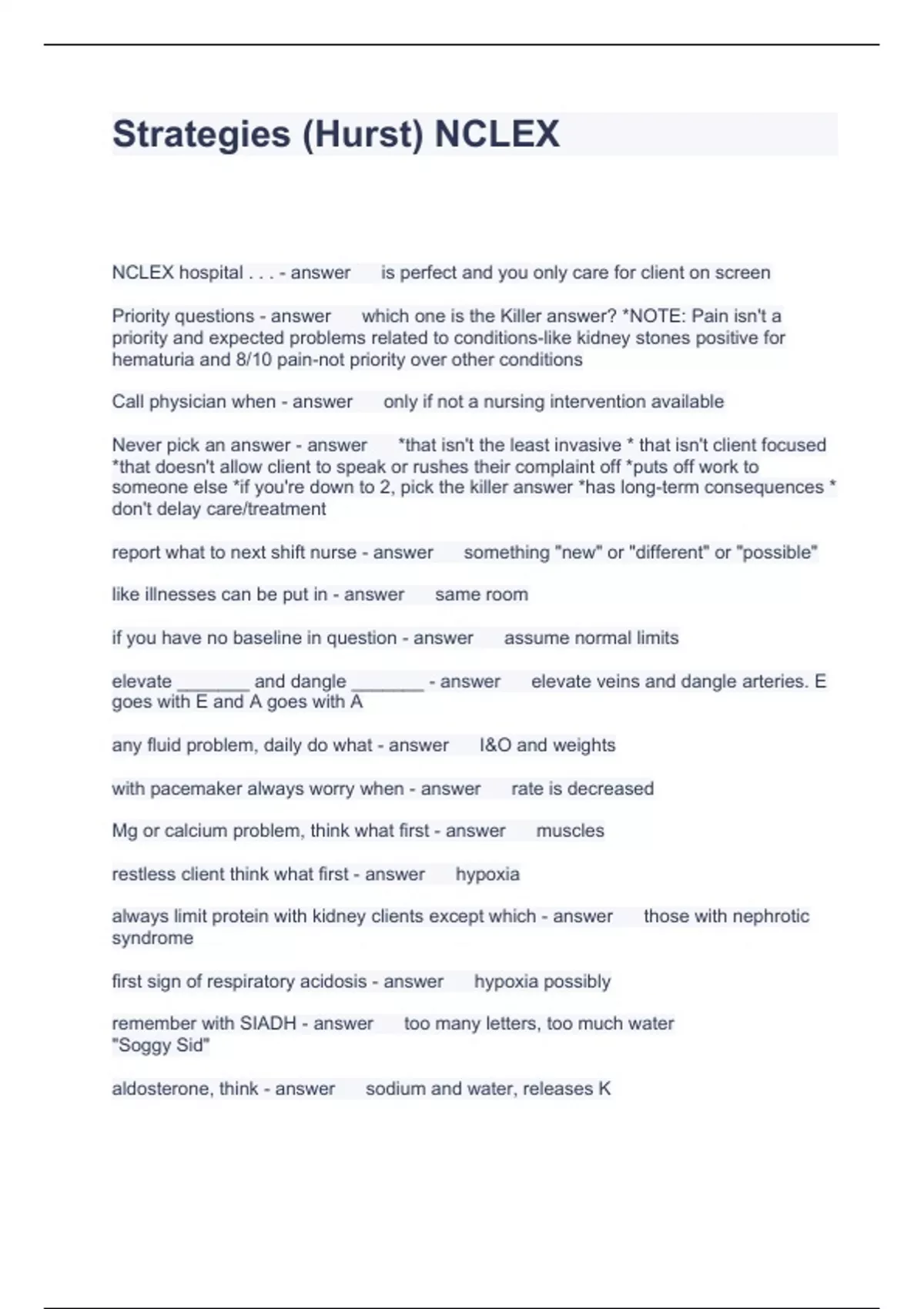 Strategies (Hurst) NCLEX Questions with correct Answers 2024