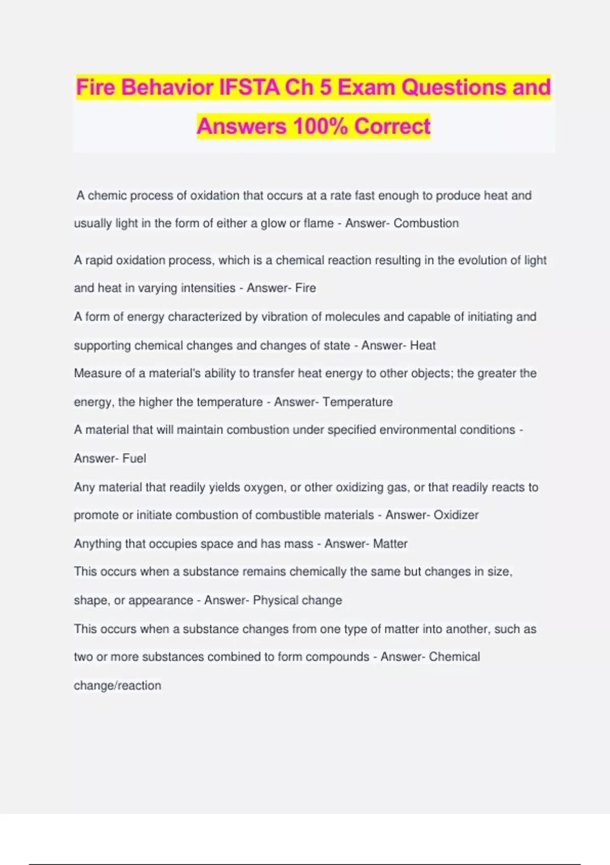 Fire Behavior IFSTA Ch 5 Exam Questions and Answers 100% Correct
