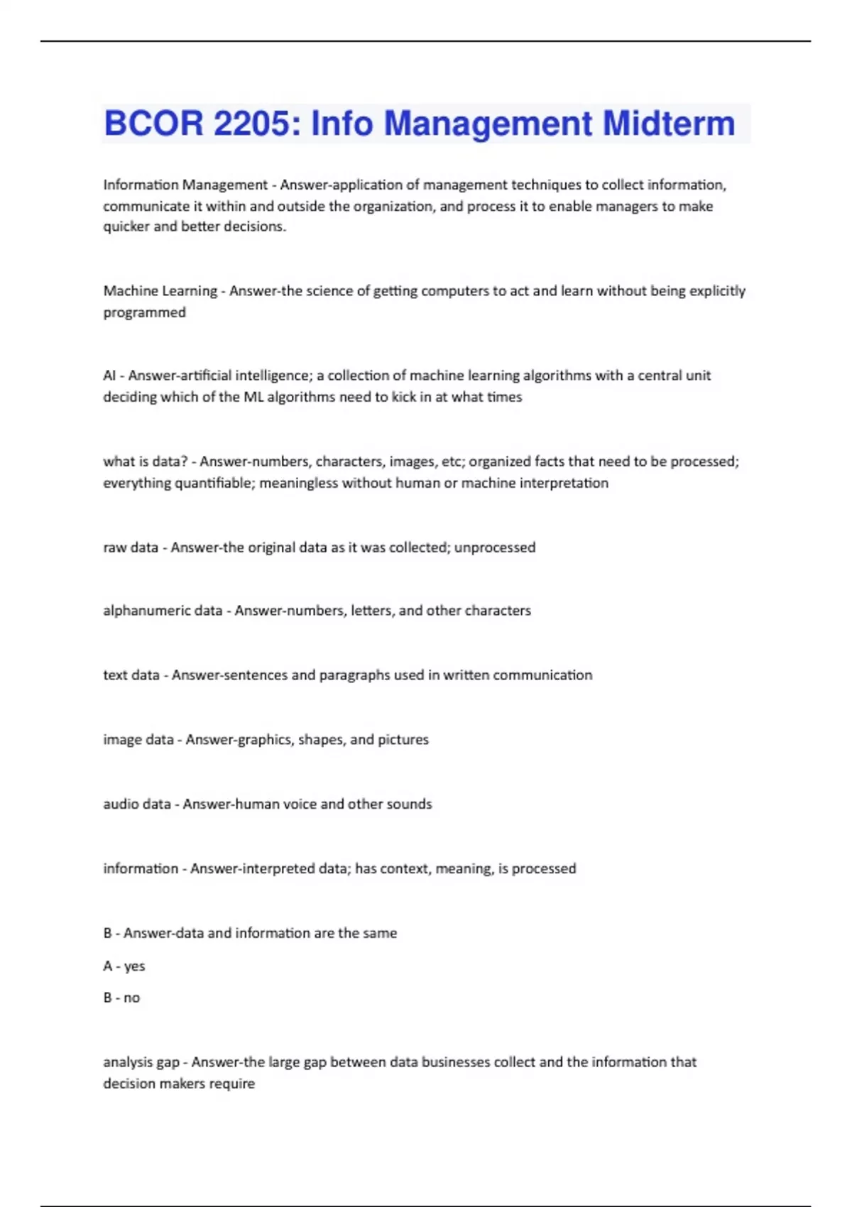 BCOR 2205: Info Management Midterm Questions With 100% Correct Answers