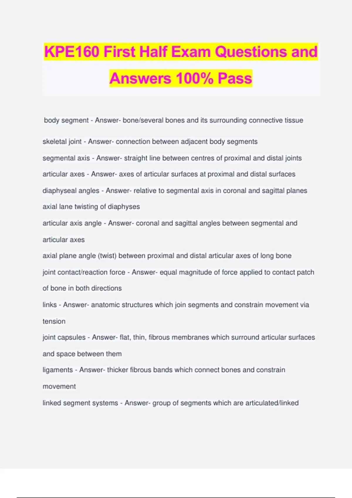 KPE160 First Half Exam Questions and Answers 100% Pass