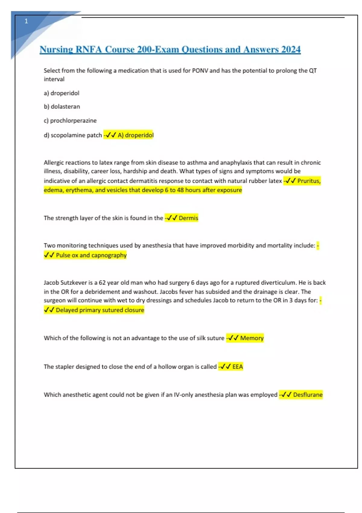 Nursing RNFA Course 200-Exam Questions and Answers 2024.
