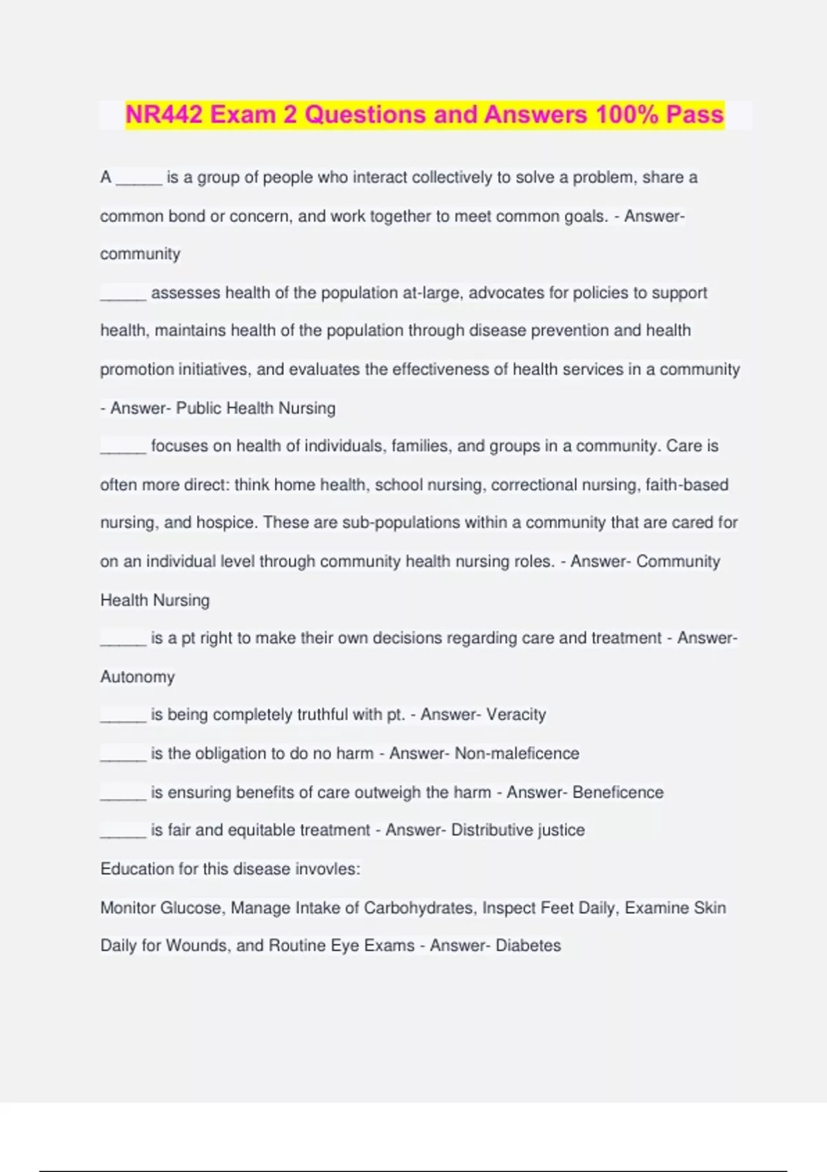 NR 442 Bundled Exams Questions and Answers 100% Verified and Updated 2024 | Graded A