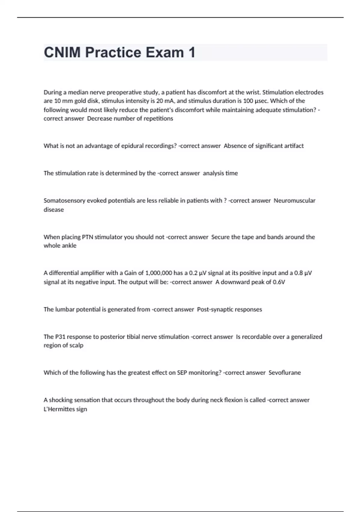 1 Exam (elaborations) CNIM Formulas Final Exam Question And Answers. 2 Exam (elaborations) CNIM ABRET Written Exam Question And Answers, 3 Exam (elaborations) CNIM - Instrumentation Practice Exam Solution Correct Answers. 4 Exam (elaborations) Cnim topics Study Guide Practice Exam. 5 Exam (elaborations) CNIM Test V Practice Question And Answers