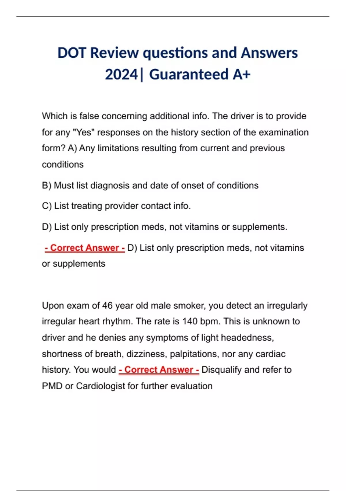 DOT Exam | Study Questions and Answers Graded A+ Latest 2024