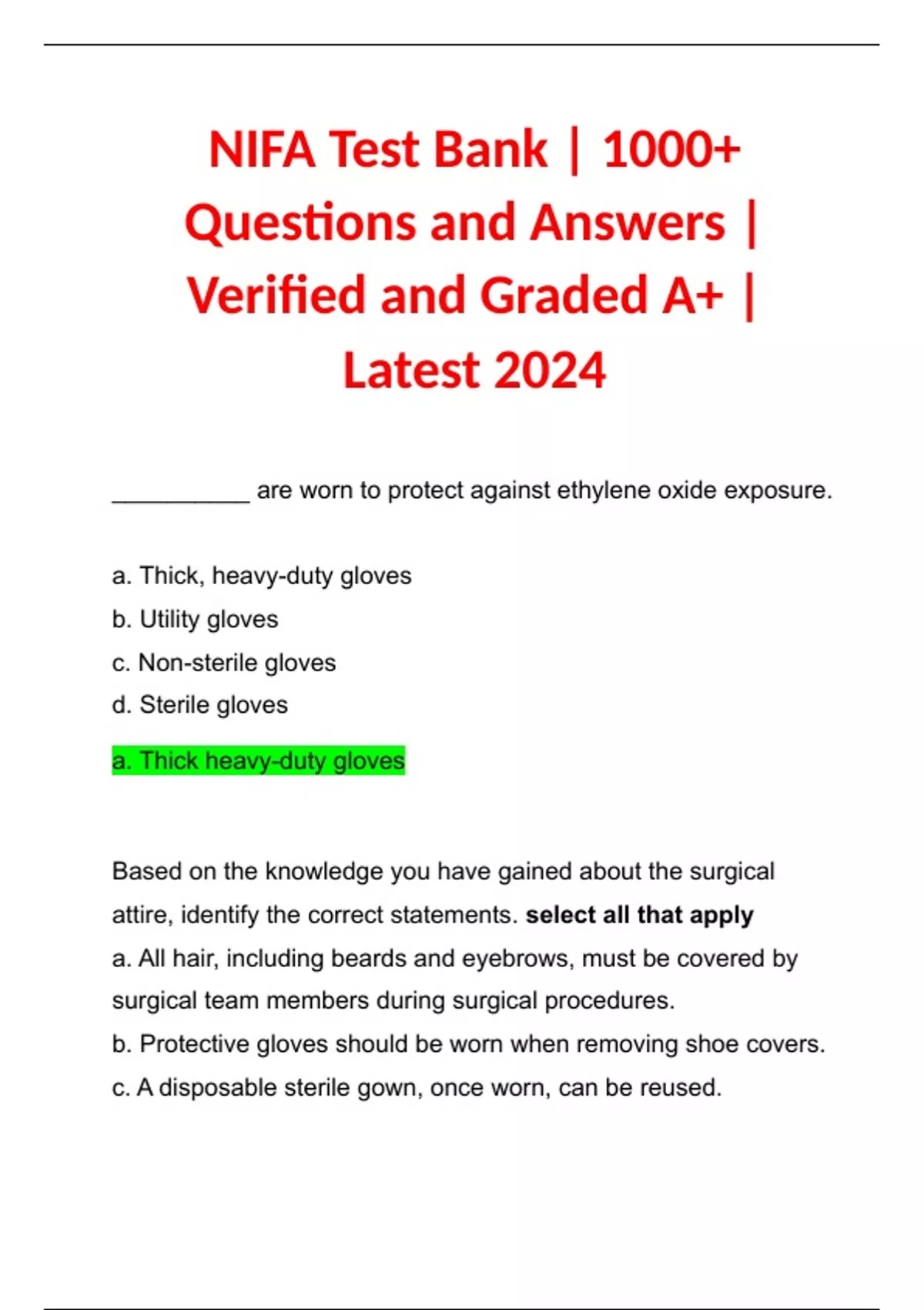 NIFA Test Bank | 1000+ Questions and Answers | Verified and Graded A+ | Latest 2024